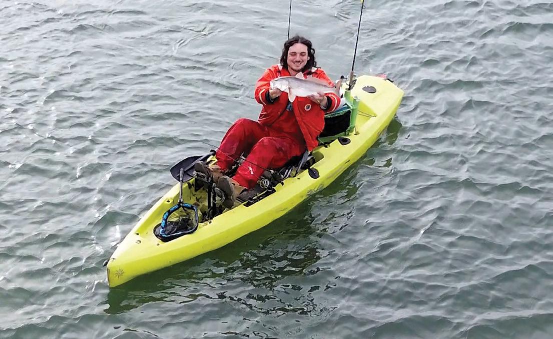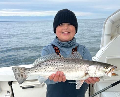 # Junior shows that surf fishing from Sandy Point can be a very interesting experience at this time of year.