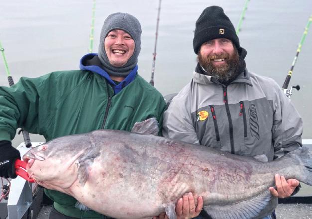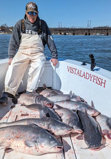 much bigger—consider heading for channel edges with 15’ to 25’ of water and sinking cut bait to the bottom. Last spring, blue cats ranging up into the 40-pound class were a highlight.