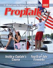 PropTalk is a monthly magazine for and about Chesapeake Bay boaters. Reproduction of any part of this publication is strictly prohibited without prior consent of the officers of SpinSheet Publishing Company. SpinSheet Publishing Company accepts no responsibility for discrepancies in advertisements.