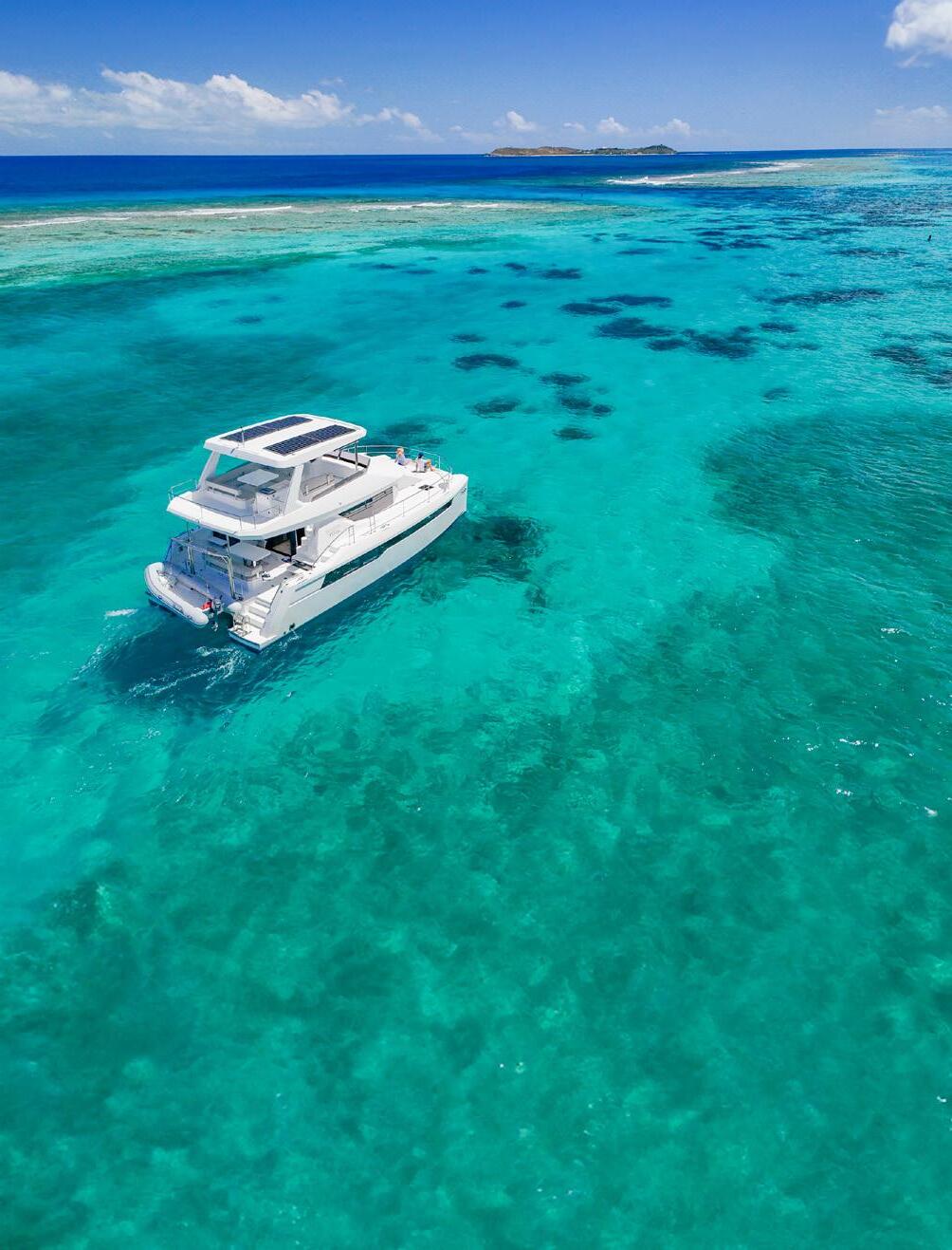 hull. Owners can enjoy the perks of all Aspen catamarans-smooth, quiet operation, exceptional stability, and reduced fuel costs-while experiencing the added versatility of outboard propulsion.