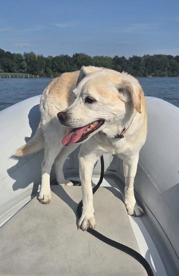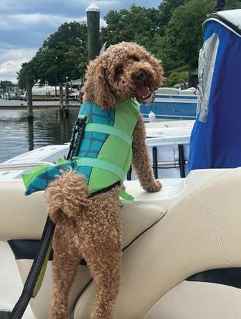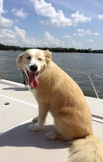 Carey Phipps shares these photos of her dog Winnie, a golden border retriever. She says, “Winnie enjoys cruising on our Bayliner 3870 Pressure Drop and trips on her personal boat (dinghy) the Miss Winnie. We currently boat out of Long Beach Marina in Middle River. At 11 we told her it was her year.”