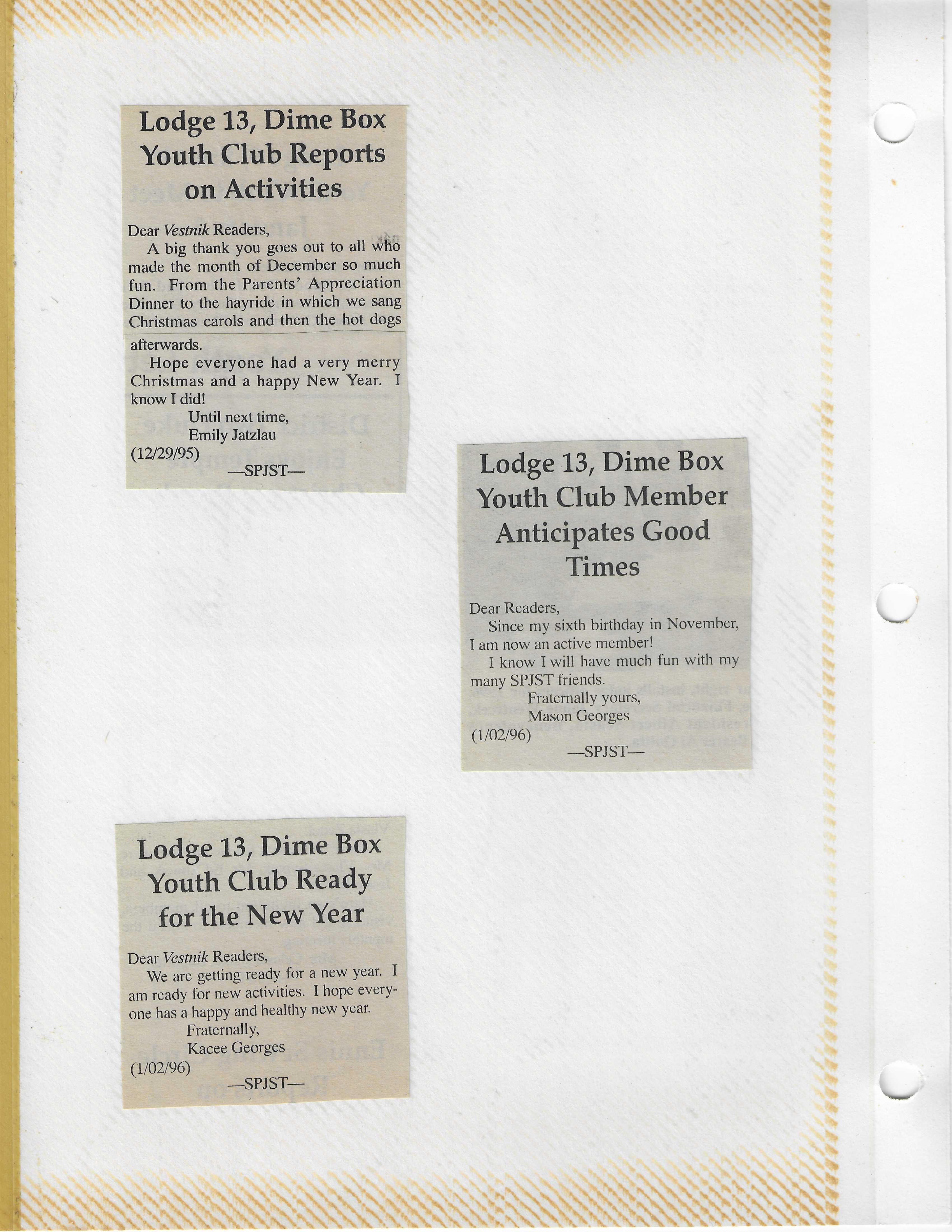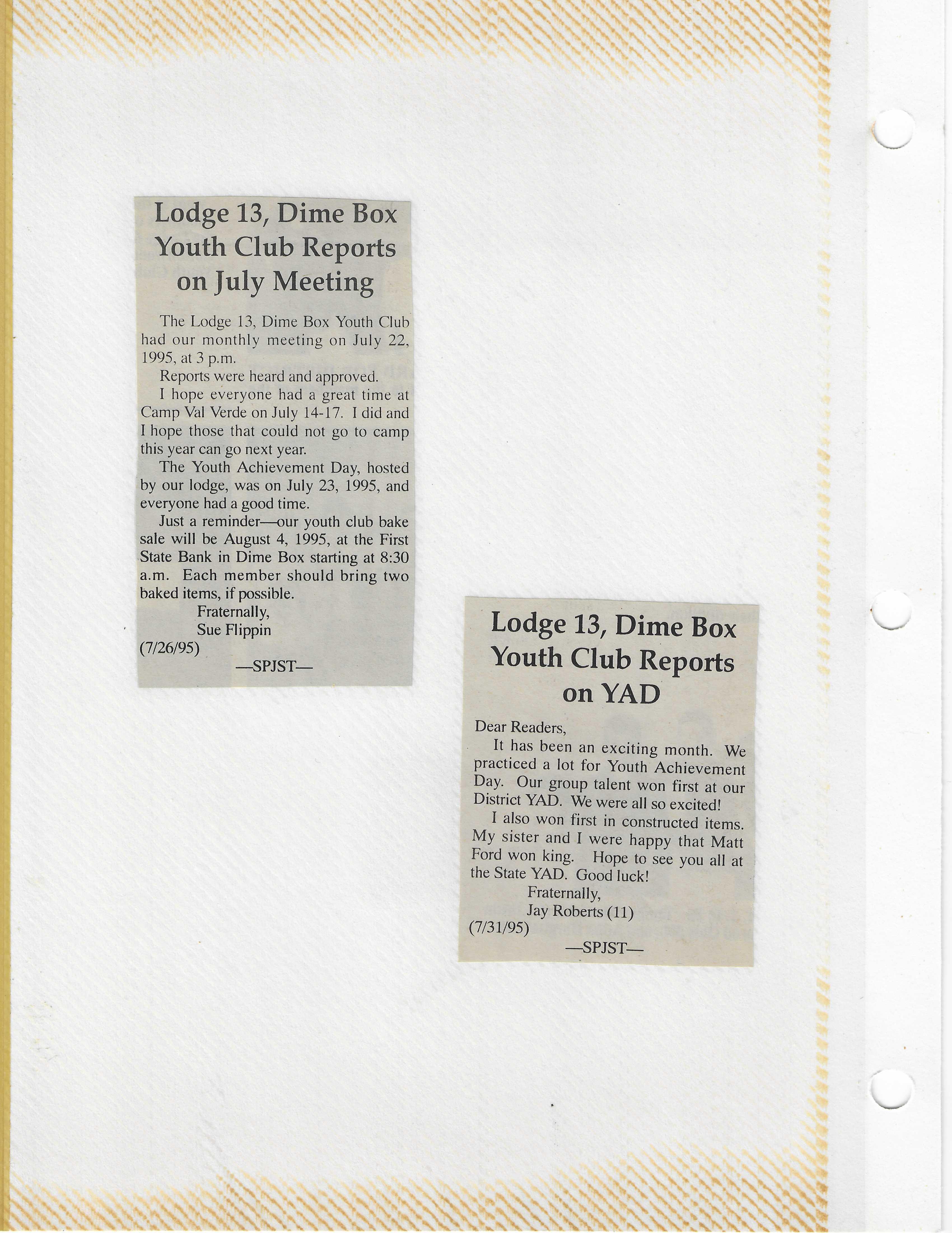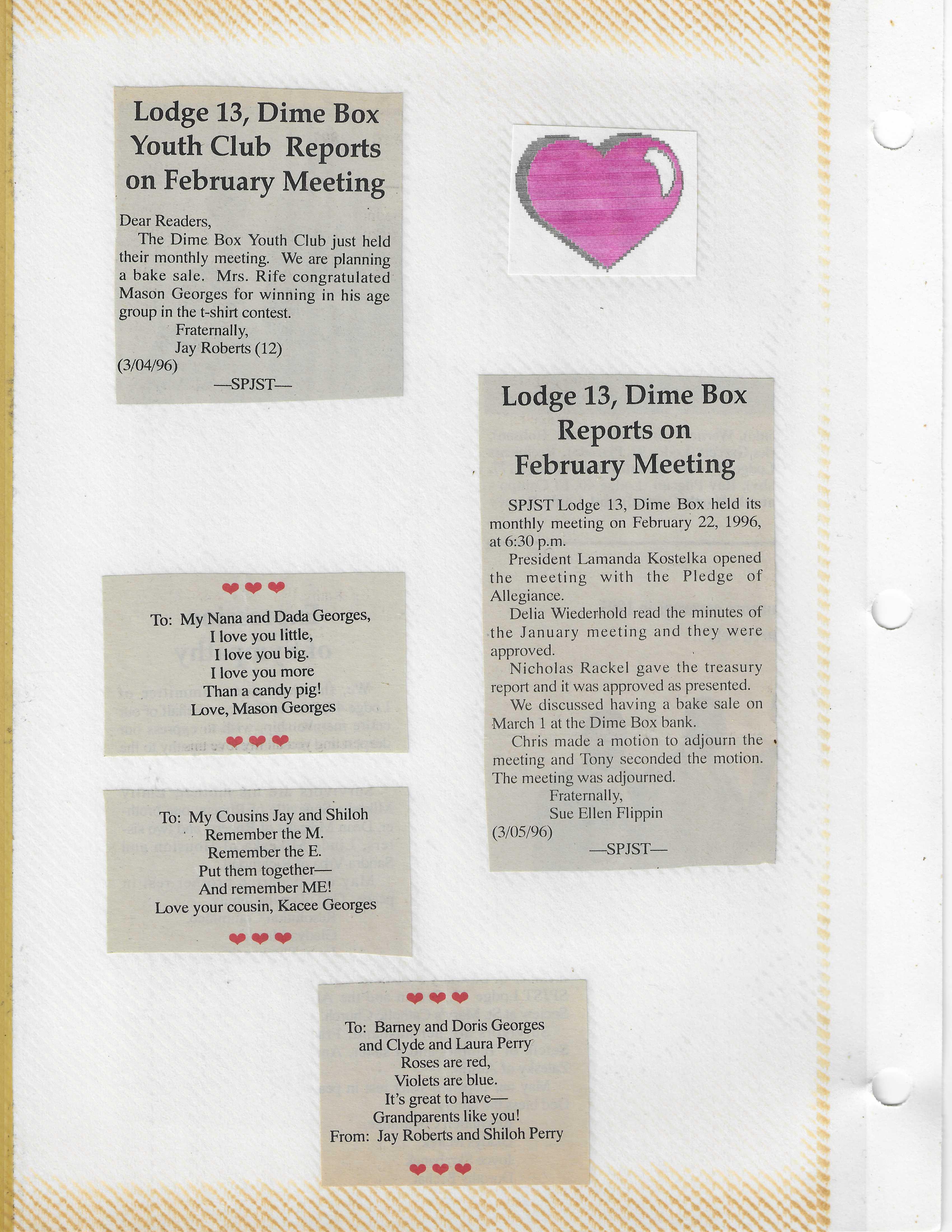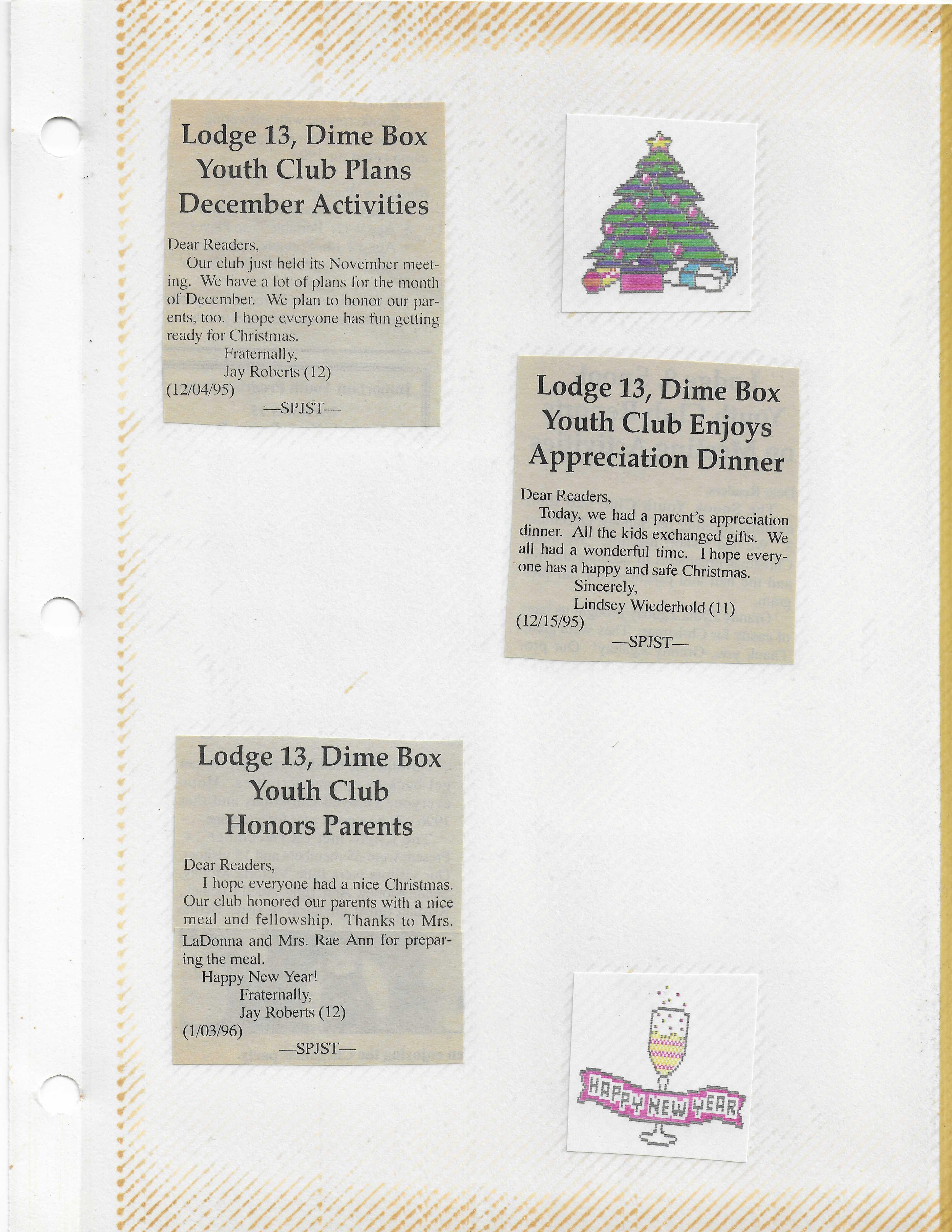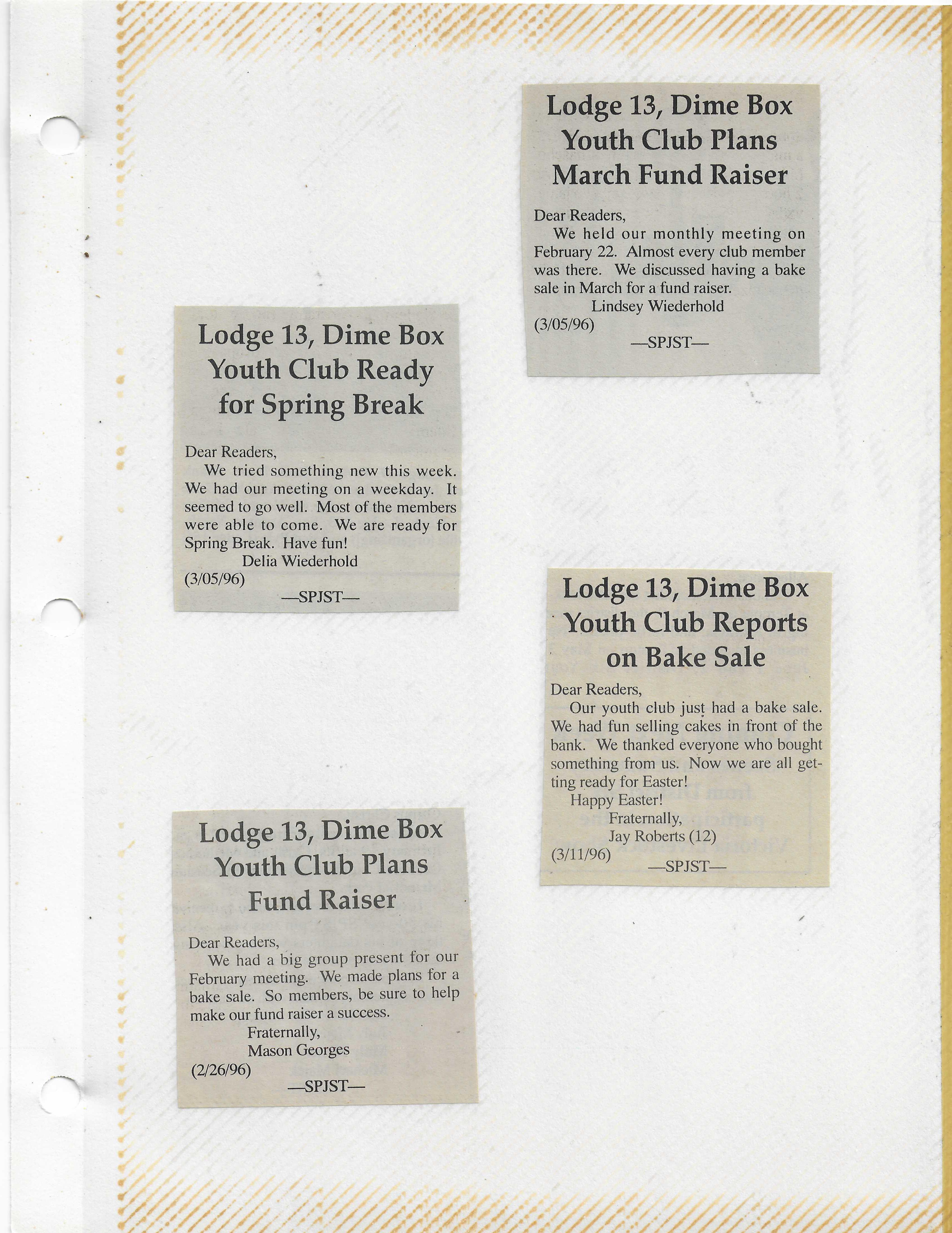 Lodge 13, Dime Box - 1995-96 Scrapbook