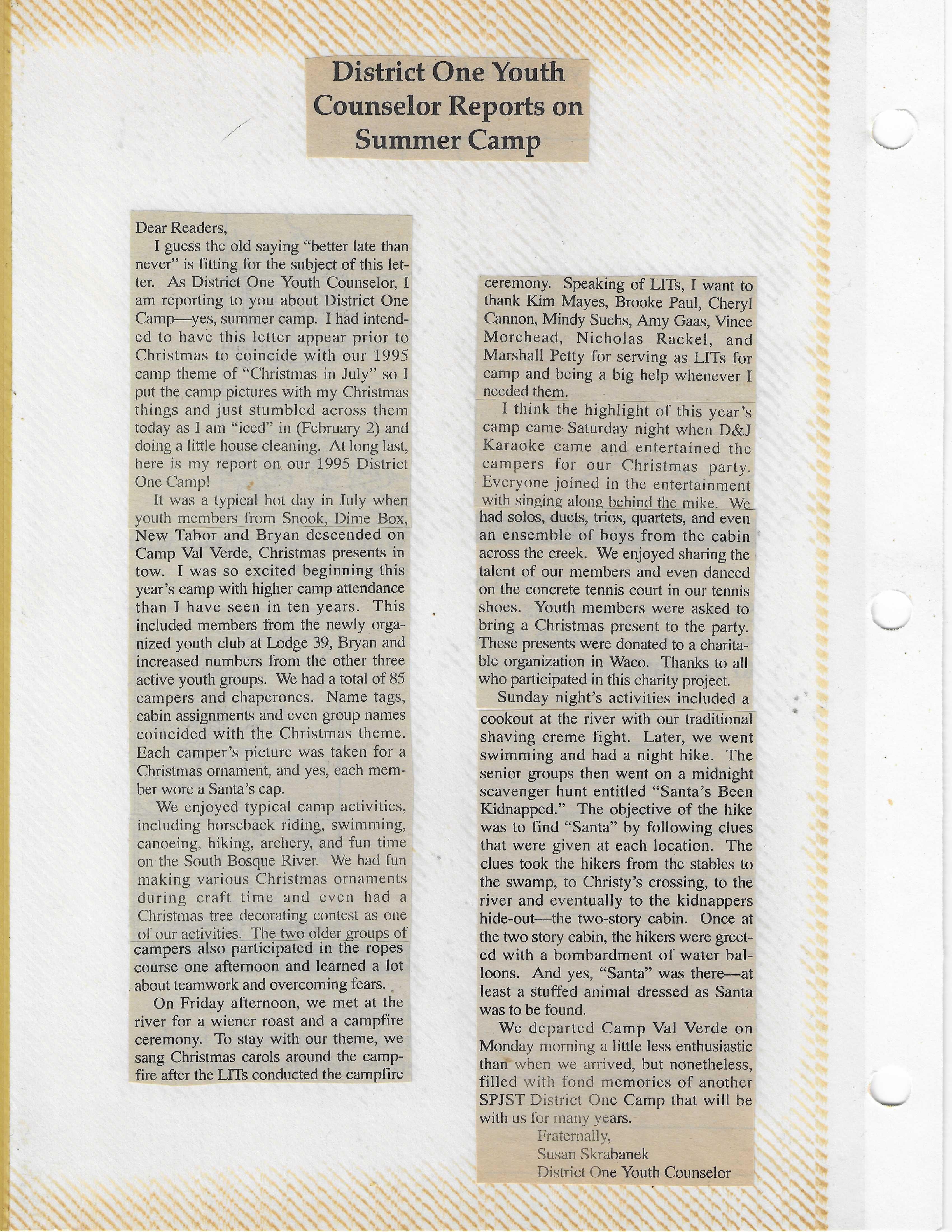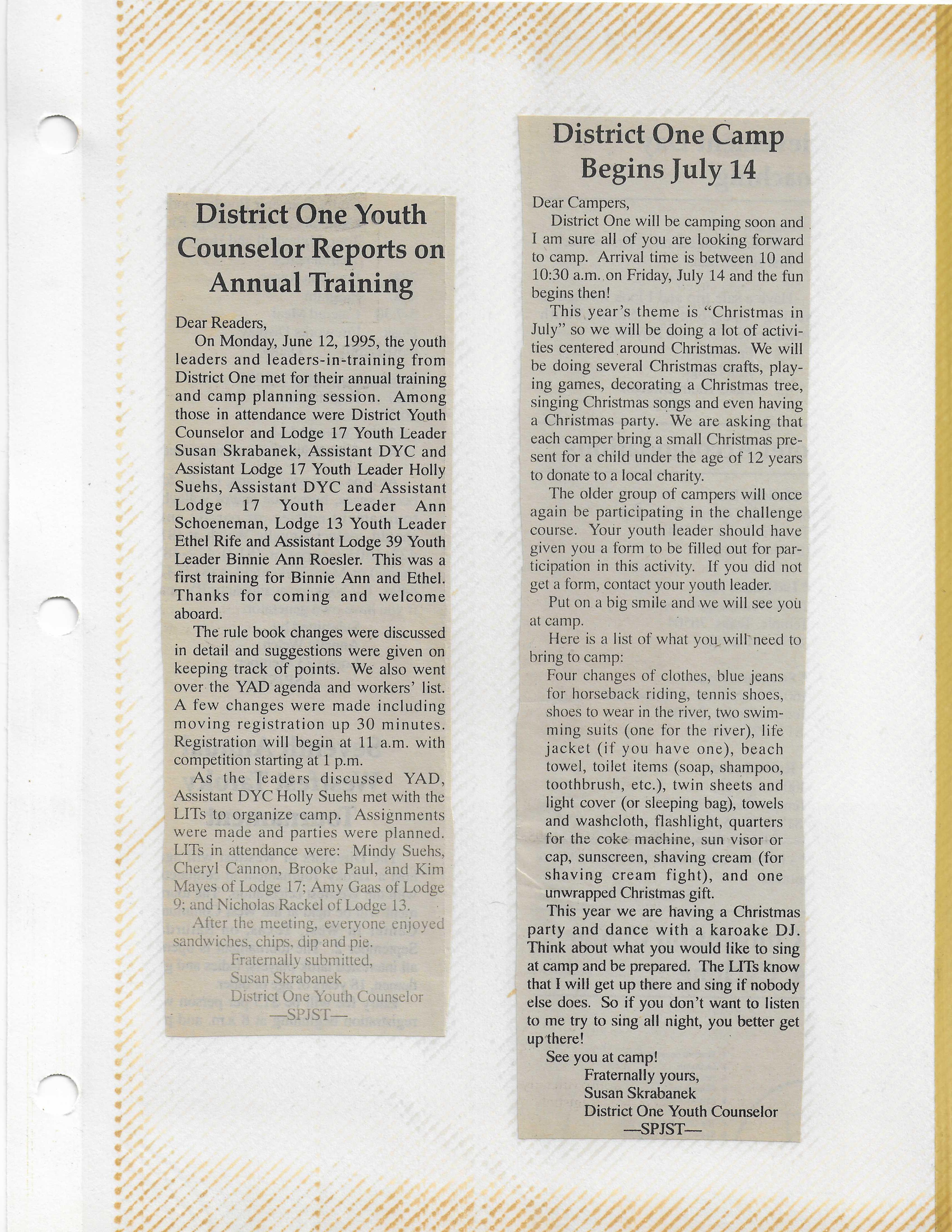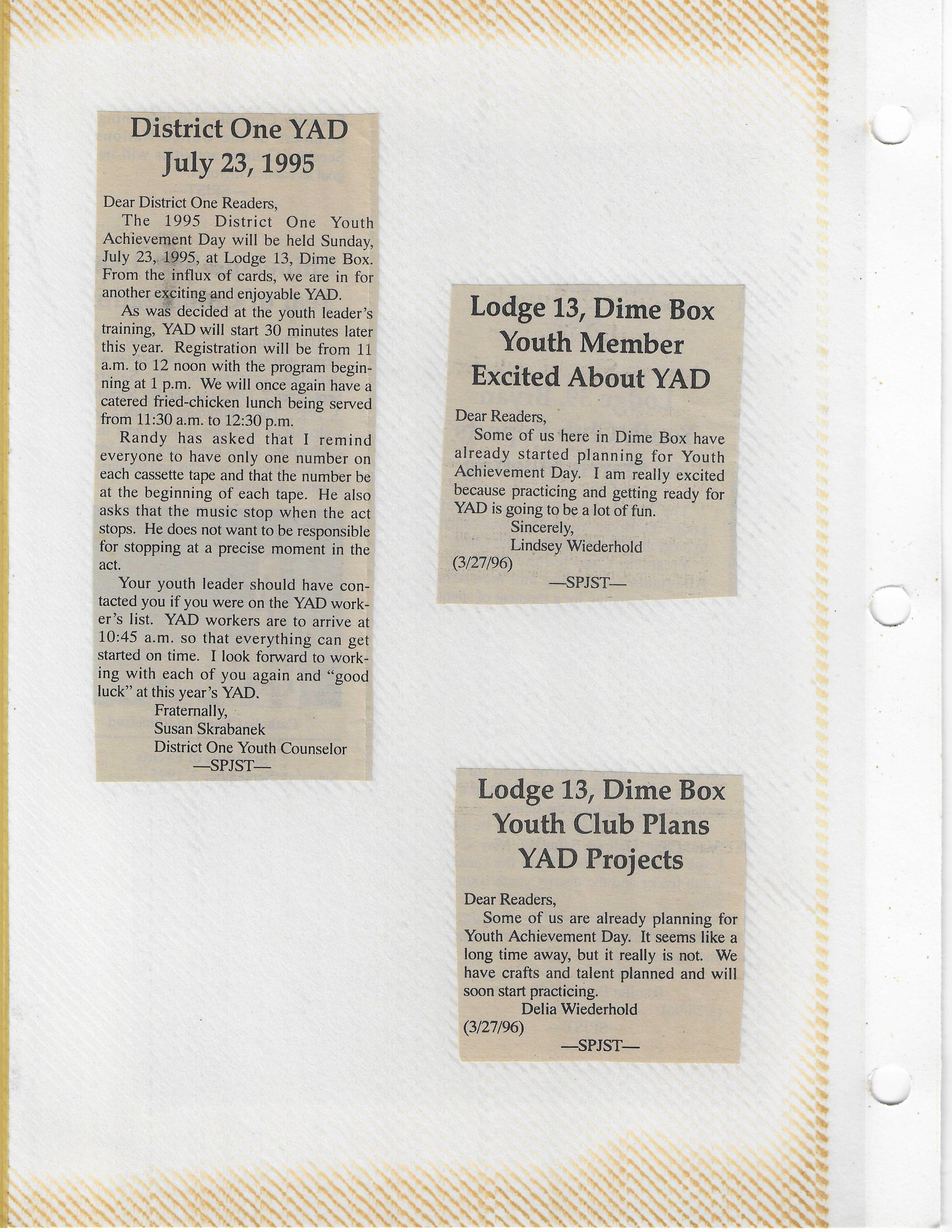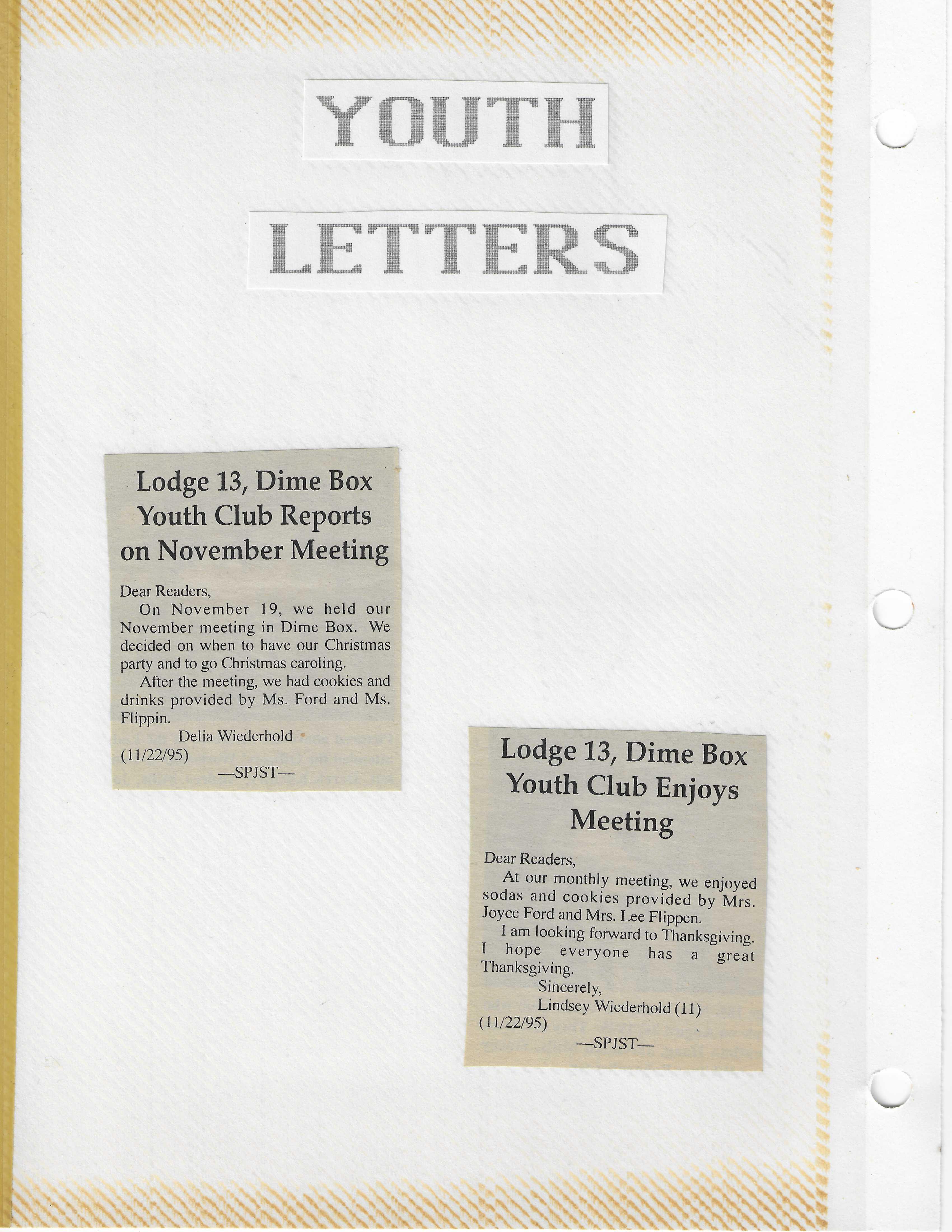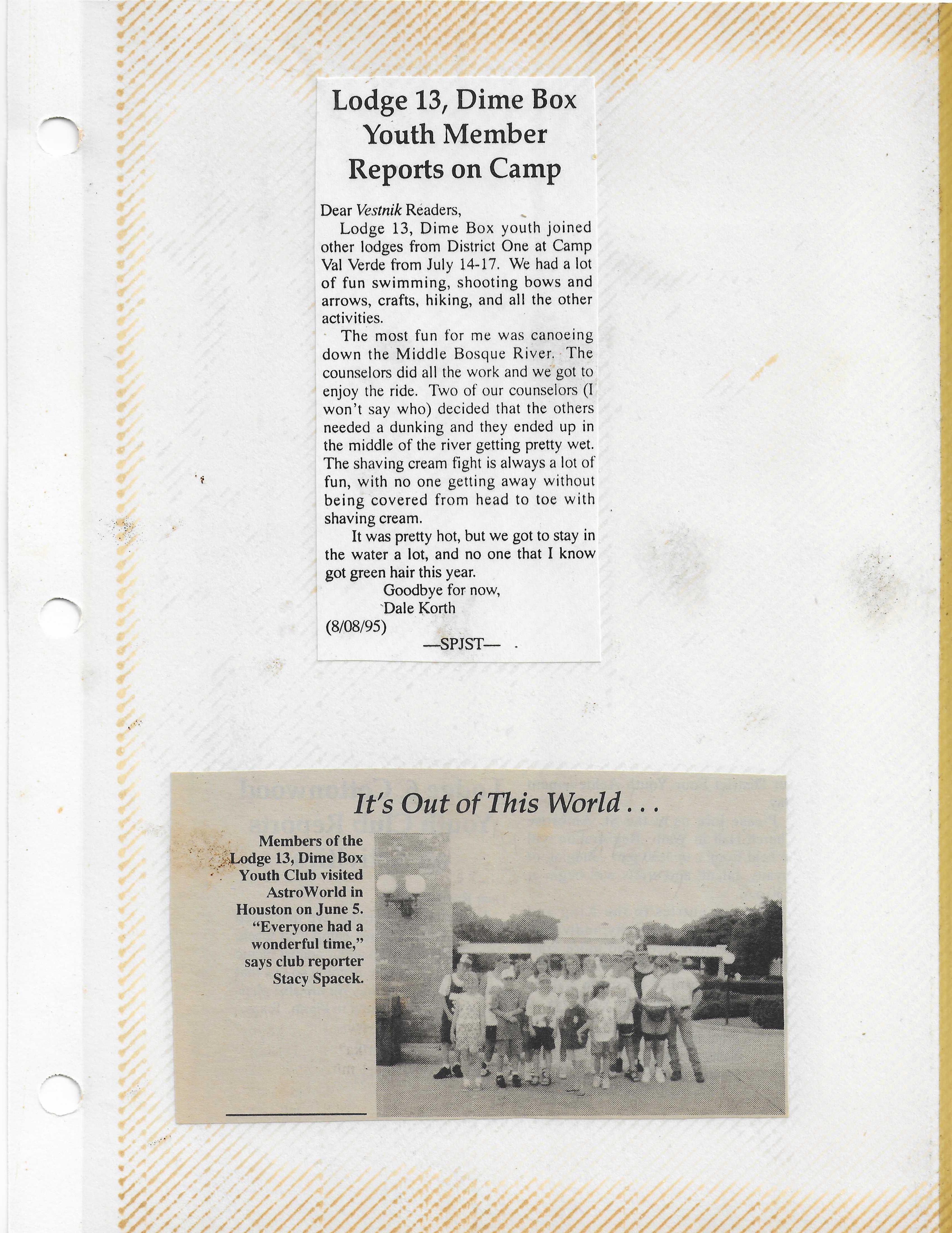 Lodge 13, Dime Box - 1995-96 Scrapbook
