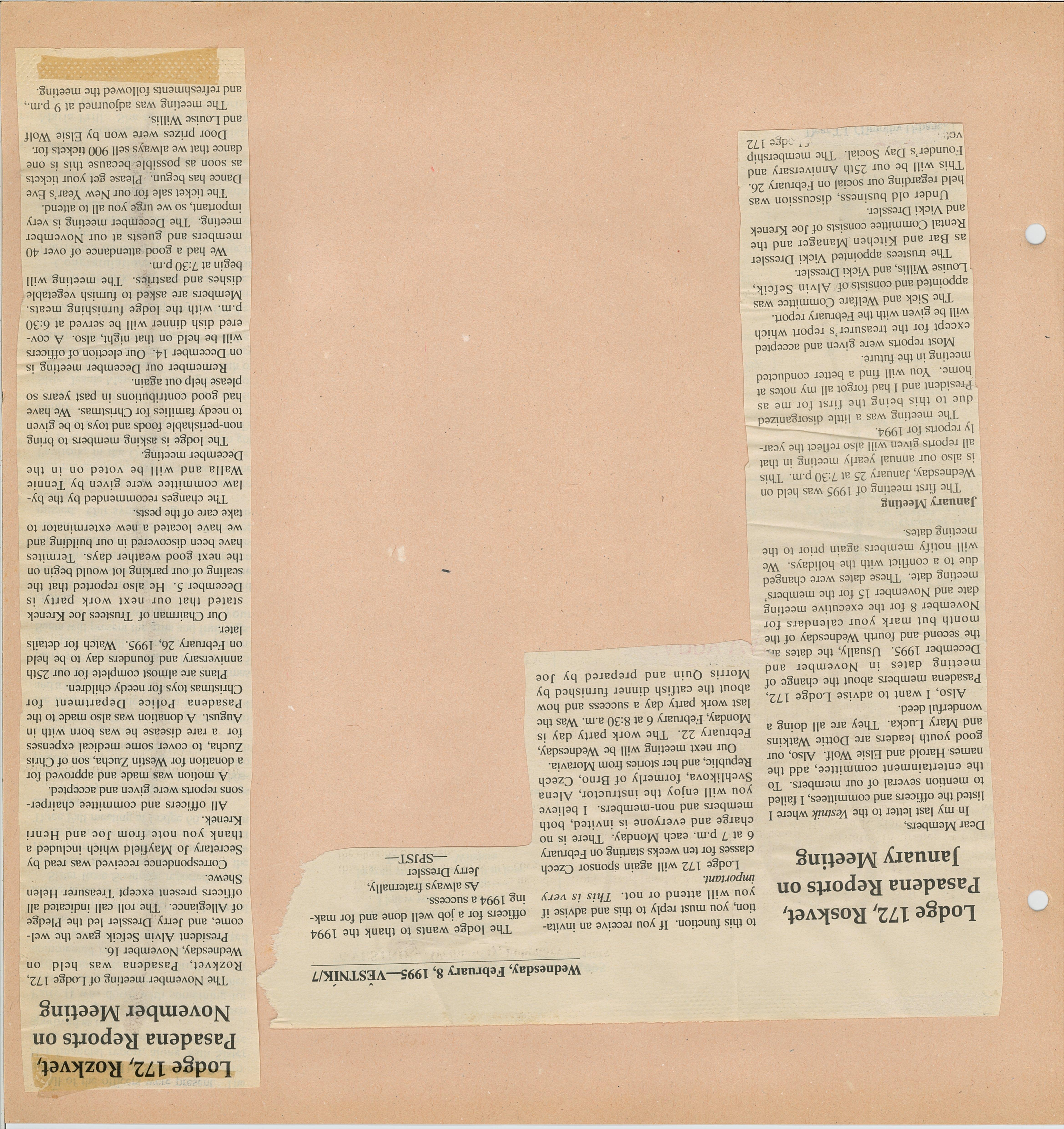 Lodge 172, Pasadena - 1994-95 Scrapbook