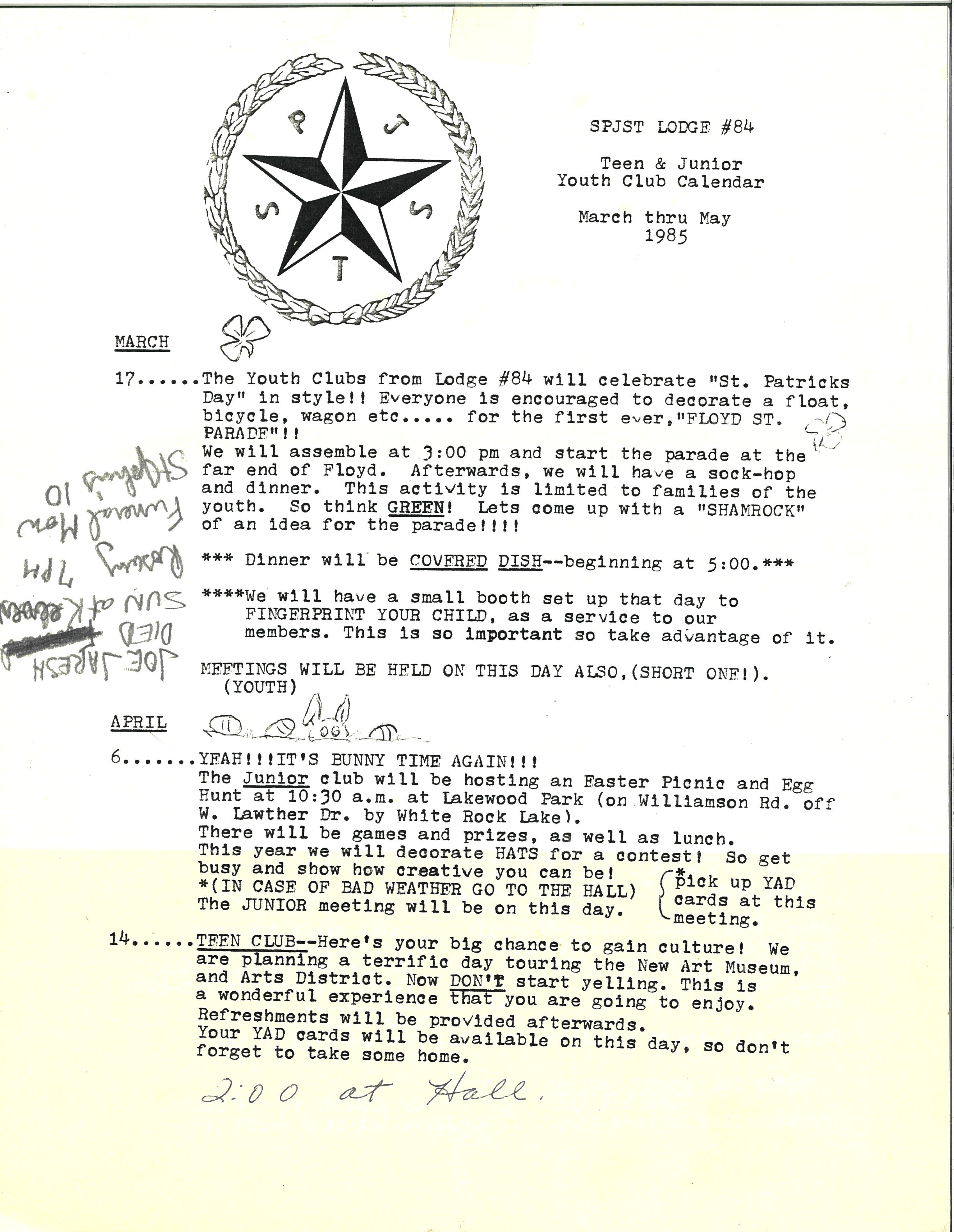 Lodge 84, Dallas - Teen Club Book #2 Summer 1972 - Winter 1996