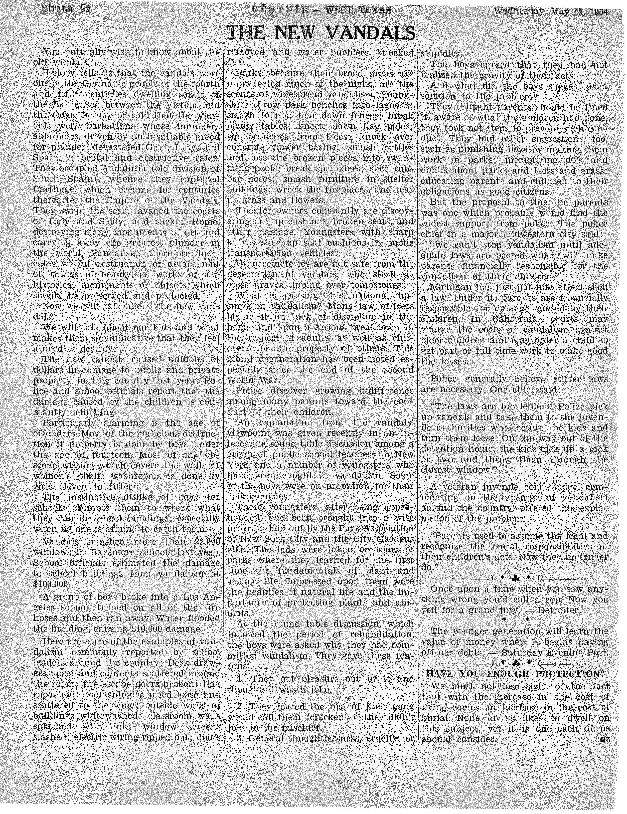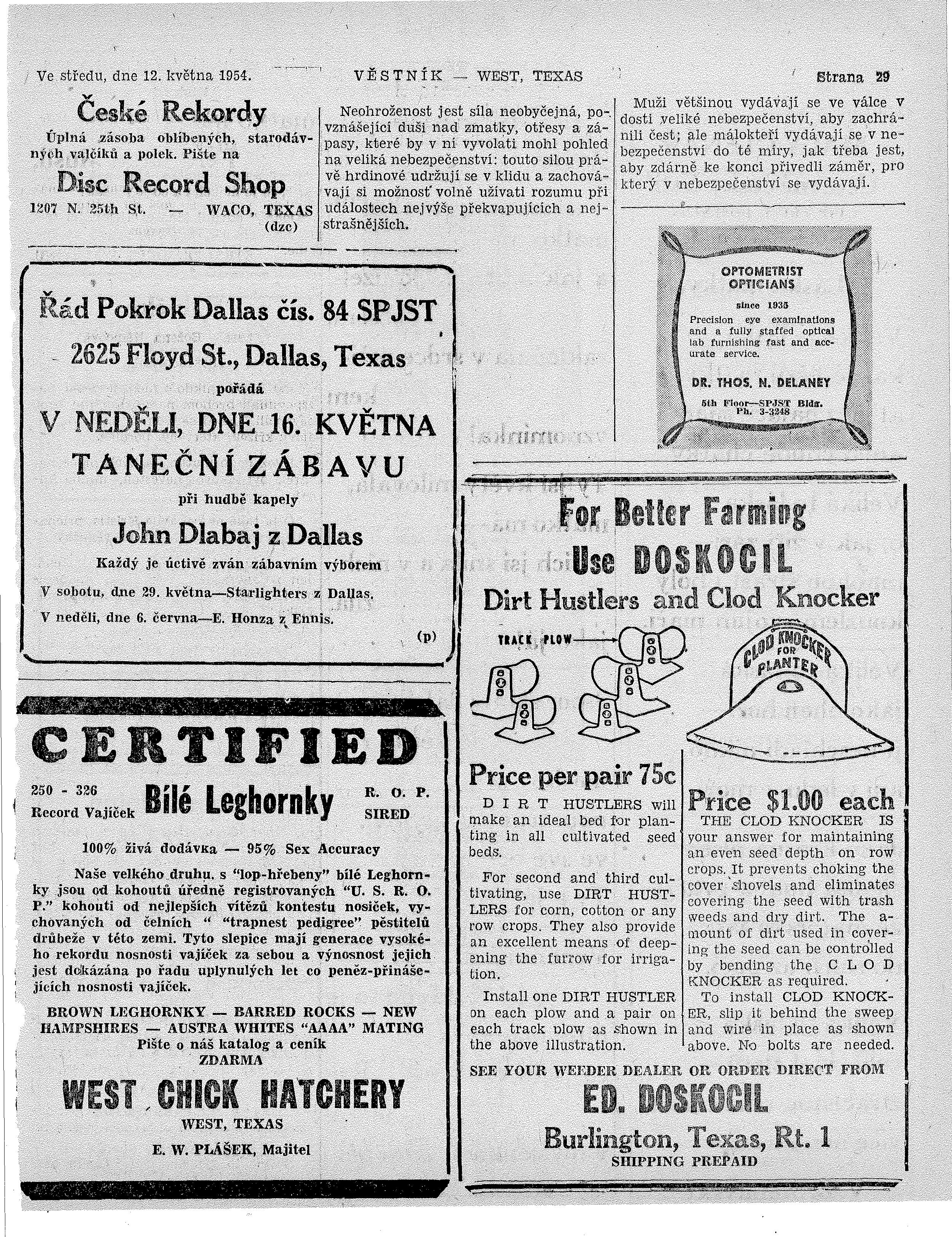 Temple, Texas, 1. kvetna 1954. Cteni broth a sestry: Tirnto se yam oznamuje, ze behem mesice dubna 1954 Hlavni tfadovna SPJST vyplatila pojiSteni po nasich zemrelych bratfich a sestrach, jak naslecluje: tmrti 'Oslo 5594. Ses. Rosie Schindler, hospodyne, od kadu Bratfi Svobody eislo 67, zemtela. 27. bfezna 1954 ye stall 55 let. Do Jednoty pkistoupila 16. prosince 1935: Cert. B-1470 na, $500.00.