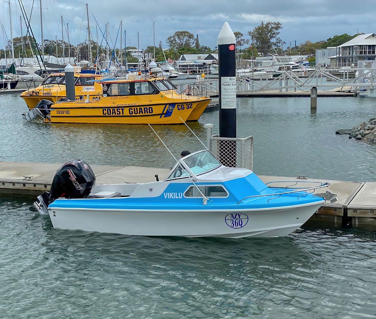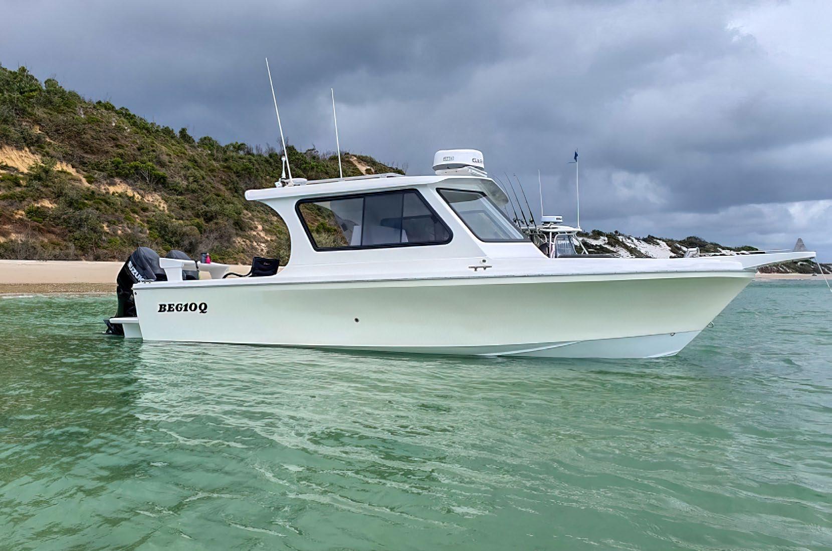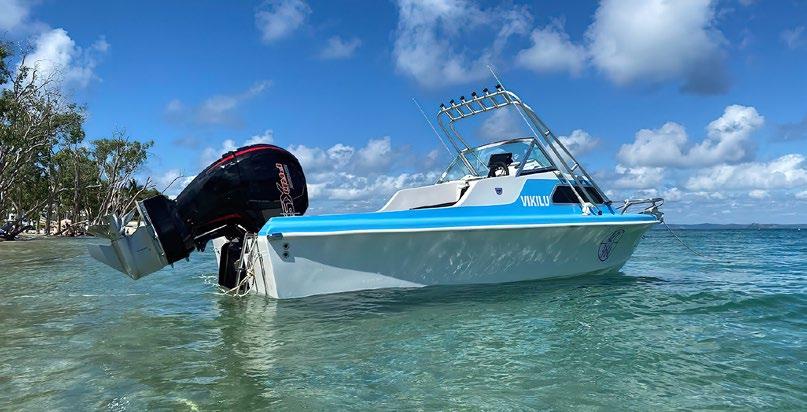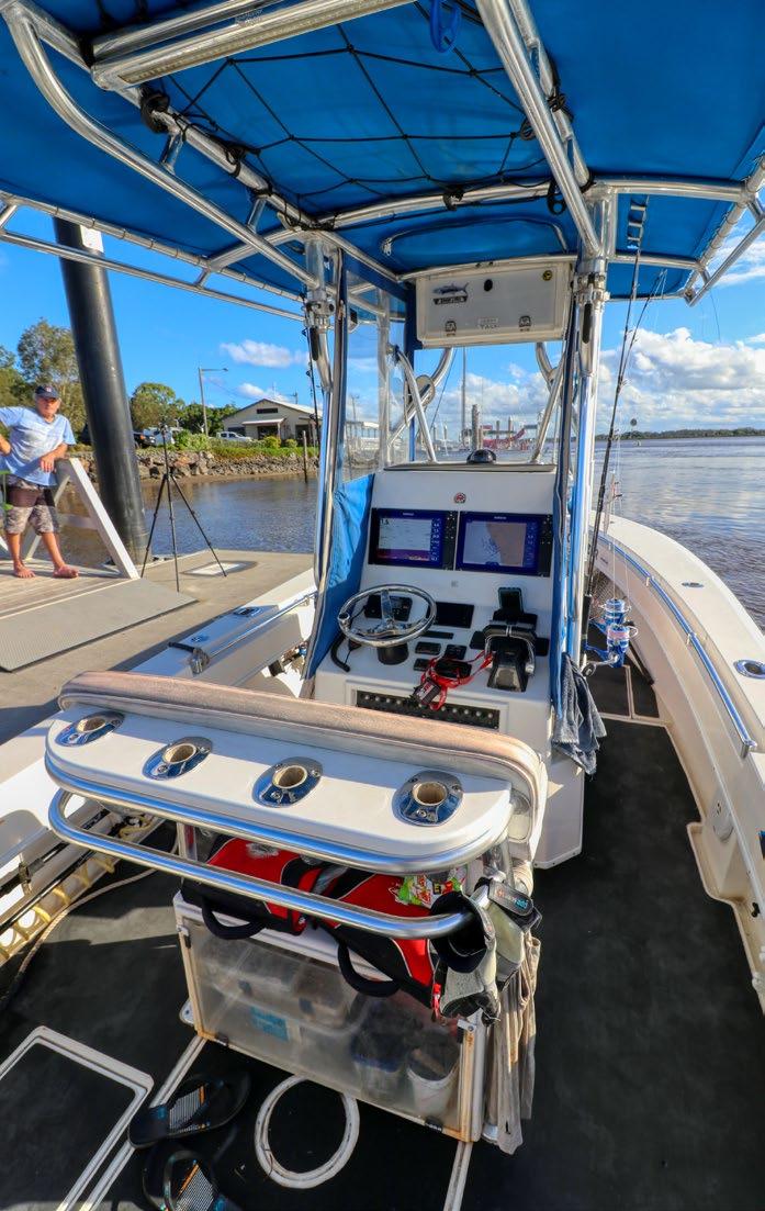 The accessories include 250 litre fuel tank, auto bilge pumps, electric anchor winch, deck wash, live bait tank, VHF radio, SS175 hw transducer, snapper racks, t-toppers outriggers, stone guard, slimy tubes, Travel Buddy oven, leaning post, McQuarrie’s pedestals and custom trim tabs.