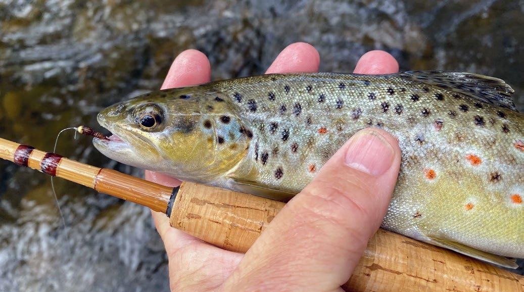 Catching a perfect little trout like this on a featherweight cane fly rod from a small Tasmanian stream is a very special experience.