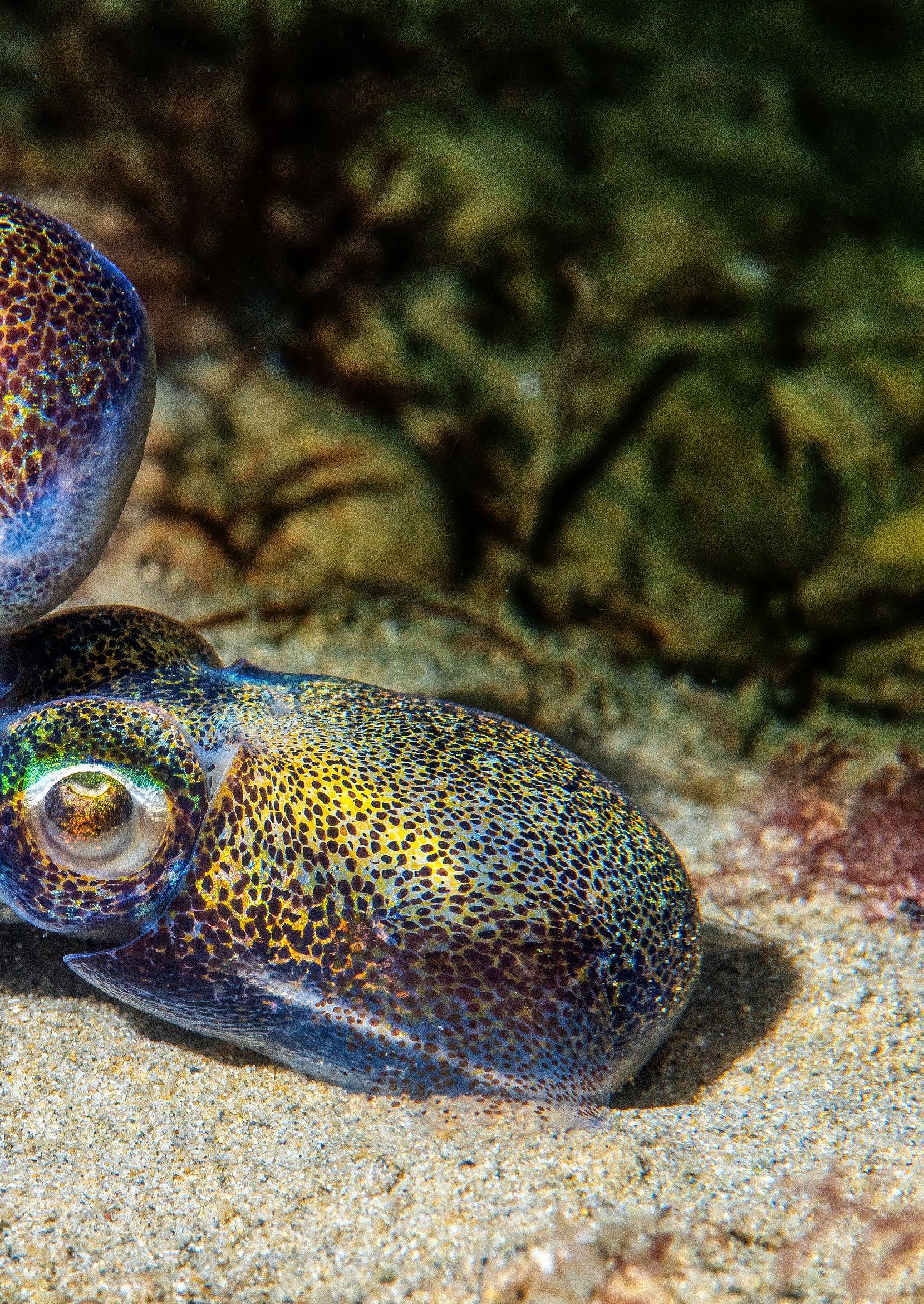 Weed and barnacle growth on jetty pylons provide nourishment and protection for an array of species.