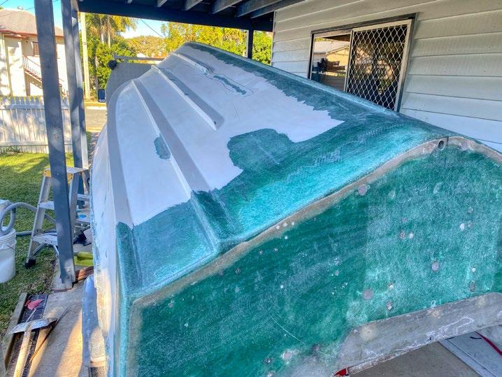 At this point, I was really starting to see the light at the end of the tunnel and wasted no time prepping and fairing the top. The top deck was painted with 2-pac paint previously, so I had to grind all this off. It was an absolutely painstaking job, but I got it done.
