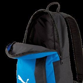 Two-way zip opening into main compartment, Hidden vertical zip at front, Webbing carry handle at top, Padded, adjustable shoulder straps, Large PUMA Cat Logo at lower leftcorner