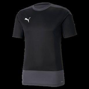 Crew Neck, Forward angled side seam, Cut and sew mesh insert panel, Contrast mesh cuffs and hem, PUMA Formstripe on shoulders, Heat transfer PUMA Cat Logo on right chest