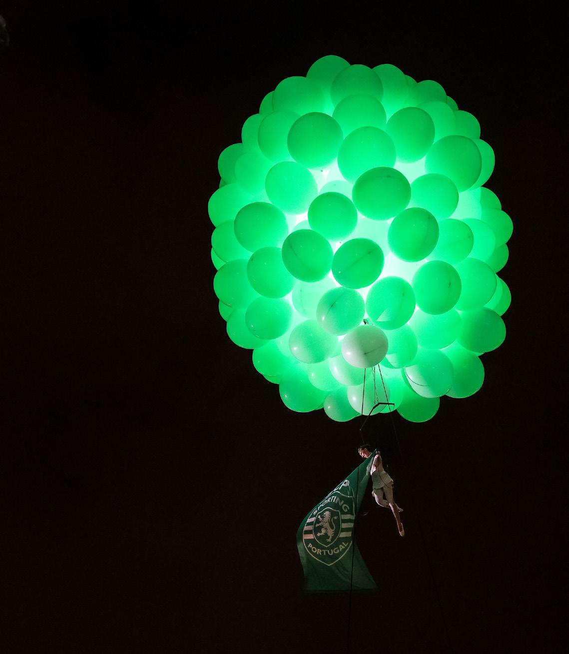 sentes de olhos e telemóveis no ar, ora com uma bailarina a sobrevoar a multidão num balão verde de ar quente, desfraldando depois uma bandeira do Sporting CP, ora num momento de realidade aumentada em que um leão ‘ganhou vida’ em pleno ‘coração’ da capital.