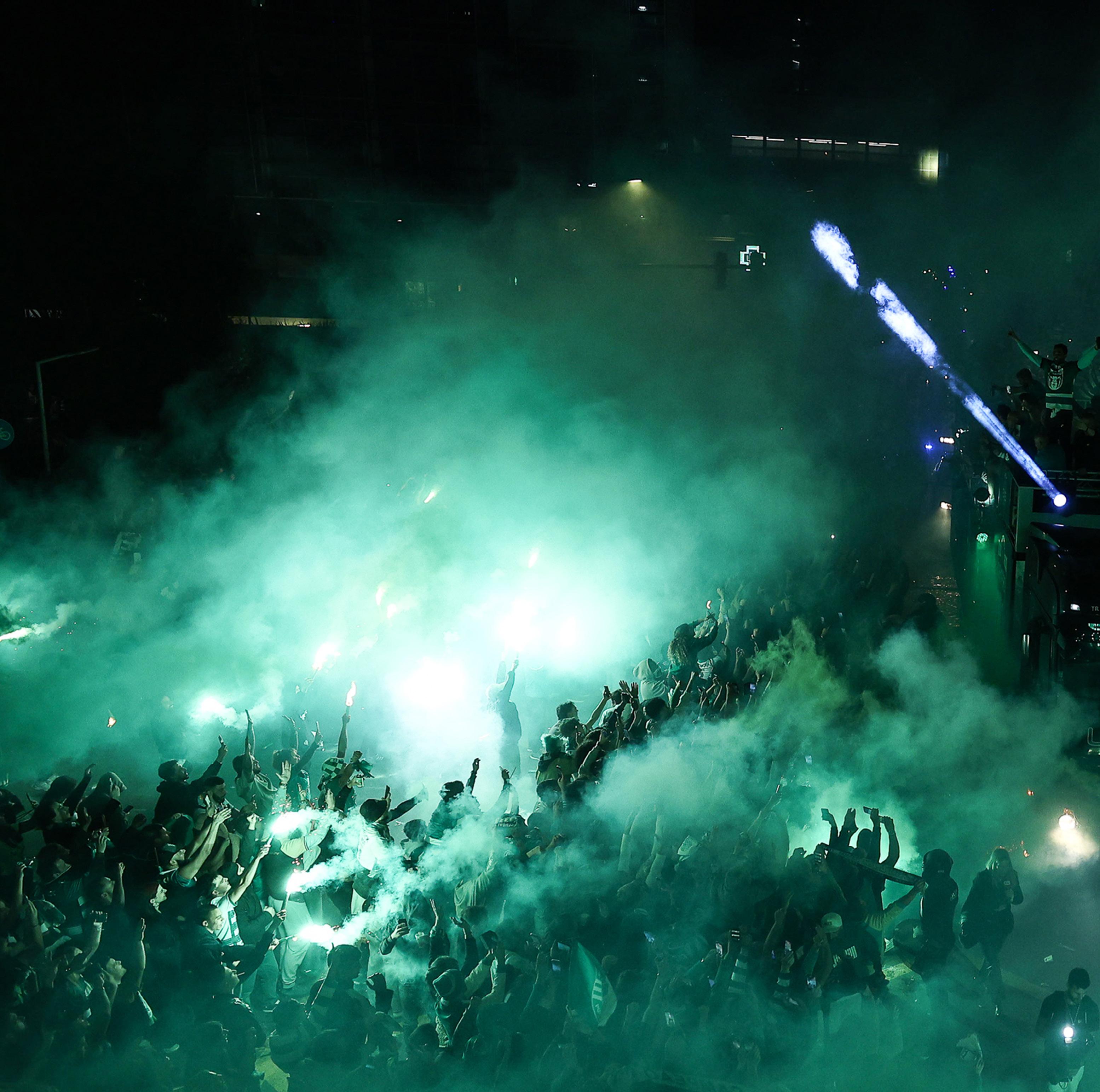 Estava desenfreada a loucura pela noite dentro, que seria longa, inesquecível e sem paralelo. Gyökeres juntou-se ao DJ Diego Miranda na cabine e durante a ‘Marcha do Sporting CP’ foi gritando, em bom português, alto e bom som, “Viva o Sporting CP!”, Antonio Adán, Inácio, Hjulmand, entre outros, treparam desvairadamente a estrutura, Geny Catamo esteve de tocha na mão e Paulinho e, sobretudo, Pedro Gonçalves tornaram-se rapida-