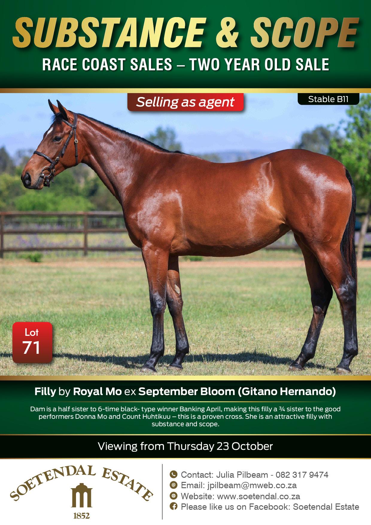 A few potential standout lots at the 25 October auction at Hollywoodbets Durbanville, includes: