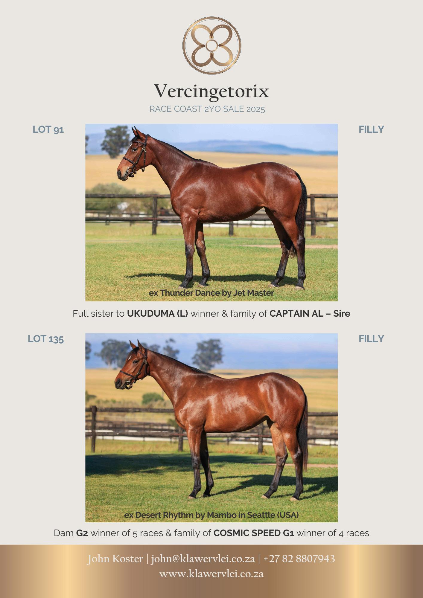 Klawervlei Stud, breeders of stars Vercingetorix, One World and Real Princess, will be offering a top-class draft at the upcoming Two-Year-Old Sale.