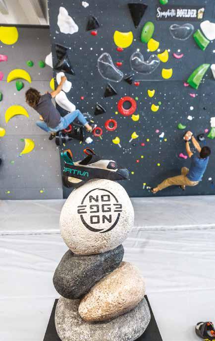 Il ridotto strato di gomma, i bordi arrotondati e l’assenza di spigoli garantiscono un’aderenza uniforme e ravvicinata con la superficie, sia in fase statica che dinamica, permettendo così una scalata naturale e precisa. No Edge ha visto un rilancio dei modelli Genius, Futura e Mantra, oltre all’introduzione di Mandala, l’attrezzo più supportivo e orientato alla performance di tutta la gamma.
