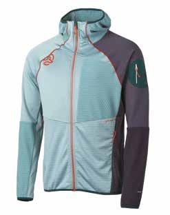 Pensato come secondo strato, questo prodotto è stato realizzato in una nuova versione Dryshell, più elastico e con una struttura jacquard a nido d’ape per un maggiore calore. Il tessuto riciclato e certificato bluesign, è altamente traspirante e ad asciugatura rapida. Perfetta per essere indossata