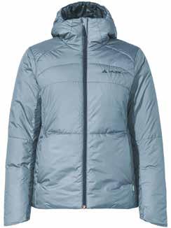 Si tratta di una giacca isolante leggera e morbida che rispecchia il concetto innovativo di economia circolare di Vaude. Progettata per offrire sia calore che traspirabilità, la giacca Neyland è una scelta ideale per attività come escursioni, slittino o sci. L'isolamento PrimaLoft RISE rende la giacca piacevolmente calda, tenendo a bada il freddo. La fodera interna spazzolata sul retro offre un ulteriore strato di calore accogliente. I polsini parzialmente elastici e l'orlo regolabile assicurano protezione contro il vento e il freddo. A differenza della piuma d'oca, l'isolamento sintetico funzionale è resistente all'umidità, garantisce un eccellente mantenimento del calore anche quando bagnato e rende la giacca facile da mantenere, asciugandosi due volte più velocemente della piuma. Due tasche frontali con zip offrono uno spazio pratico per riporre piccoli oggetti o per dare rifugio alle mani fredde. La giacca include anche una tasca interna, che consente di ripiegarla per riporla comodamente in uno zaino o in una borsa da lavoro. La Neyland Hooded è trattata con Eco Finish.