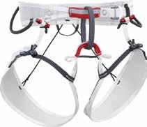 realizzata in tessuto anisotropo che garantisce flessibilità e sostegno e consente di ripartire i carichi in modo ottimale senza l’impiego di imbottiture; il tessuto di cintura e cosciali deriva dalle competizioni di barca a vela ed è 100% climate neutral, realizzato in materiale riciclato post-consumo proveniente dalla produzione europea che consente di raggiungere un contenuto riciclato del 28/39% (rPES). L’innovativo anello di assicurazione senza cuciture ha un ingombro ridotto per agevolare la legatura e l’utilizzo di moschettoni compatti e longe; i punti di attacco sono provvisti di fasce catarifrangenti per una legatura sicura anche in condizioni di scarsa illuminazione mentre i cosciali hanno una doppia possibilità di regolazione e sono provvisti di elastici di sostegno regolabili. Presenta una struttura sottile e flessibile che consente di ripiegarla facilmente nello zaino o in una tasca della giacca; completano l’imbracatura tre portamateriali, due inserti per moschettone porta-materiale e due fettucce di stabilizzazione per viti da ghiaccio.