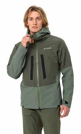 Questa giacca hardshell a 2,5 strati particolarmente robusta è in grado di unire prestazioni e sostenibilità in egual misura. Il guscio impiega la membrana Ceplex Pro che, con una resistenza di 20.000 mm di colonne d’acqua e un’elevata traspirabilità, rappresenta la più potente di Vaude, il tutto senza uso di fluorocarburi. Questo capo è specificamente progettato per gli alpinisti: riesce infatti a restare al suo posto dentro l’imbragatura anche durante le manovre di arrampicata, mentre le tasche anteriori sono facilmente accessibili in ogni momento. Il cappuccio è compatibile con il casco e il colletto anti-tempesta, insieme all’orlo e ai polsini regolabili, impediscono l'ingresso di neve e vento. Presenta zip sotto le braccia per una ventilazione aggiuntiva si adatta a diversi strati di isolamento.
