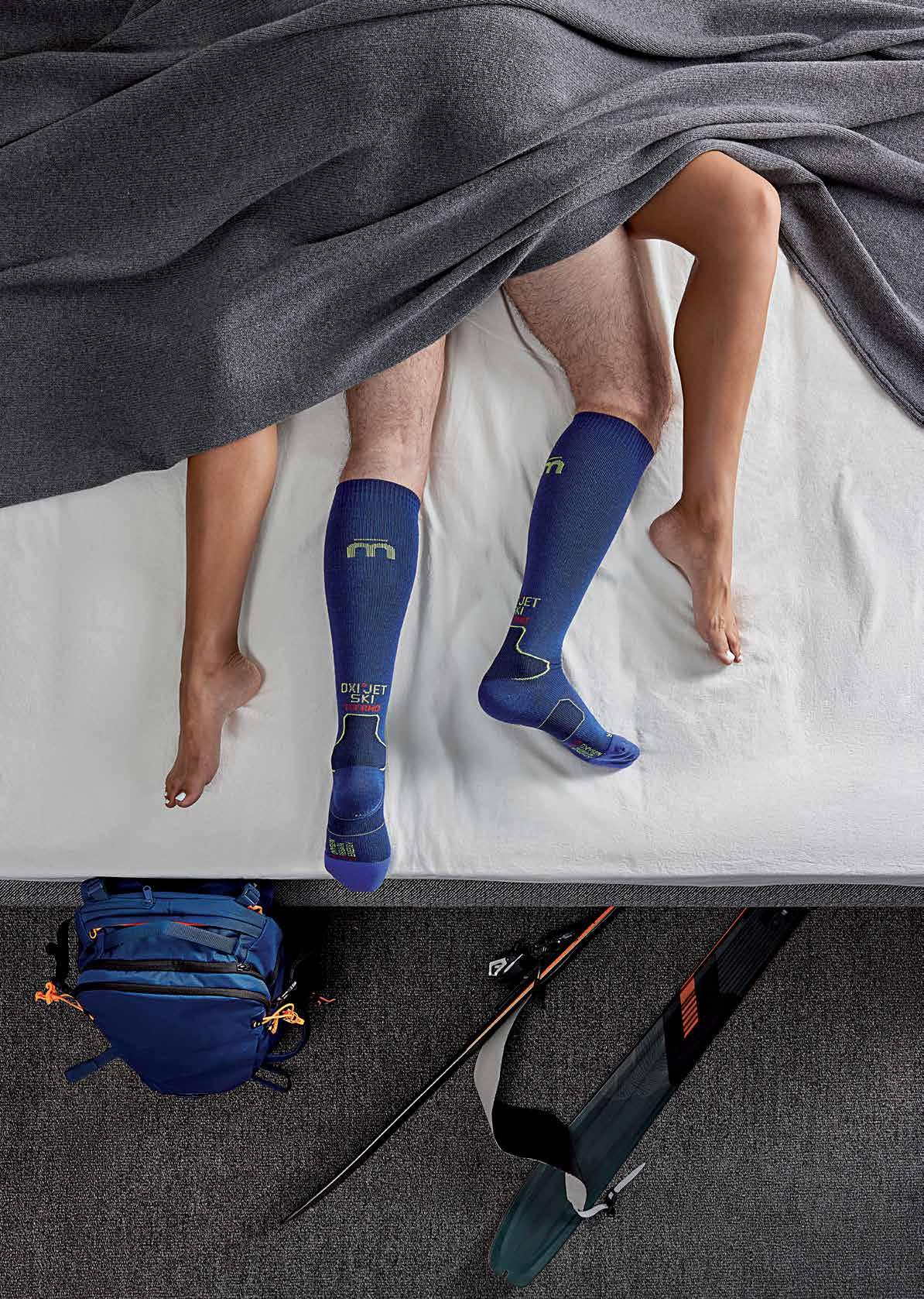Le calze presentano una struttura in maglia light di lana e fibra Lycra. Garantiscono la massima sensibilità, ideale per scarponi termoforati. Includono una fascia elastica anti-torsione su tutto l’avampiede e alla caviglia per una calzata stabilizzata. Infine, completa il tutto una cucitura piatta invisibile anti-frizione.