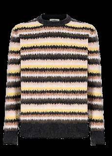 Piacenza 1733 presents a sweater made from fine Alashan cashmere, inspired by the 19th-century travels of the Piacenza family and Indian Ikat dyeing techniques. Crafted using exclusive weaving techniques, the garment features horizontal stripes in delicate hues, with a color palette that includes saffron yellow, mélange gray, and tea leaf.