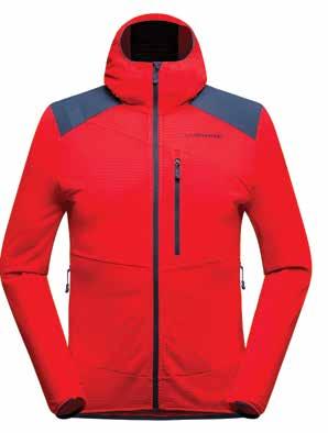 Realizzata in collaborazione con guide alpine, la maglia con cappuccio Aequilibrium Thermal di La Sportiva è stata perfezionata per dare pro tezione, calore e traspirabilità nelle avven ture ad alta quota. Dotata di isolamento termico Polartec Power Grid e di spalle resistenti a graffi e abrasioni, permette di farsi strada sui sentieri più difficili senza pensieri. Gli inserti in mesh sotto le ascelle migliorano la traspirabilità, mentre il cappuccio si asciuga rapidamente per non fare prendere freddo sui tratti meno intensi. Il cappuccio ergonomico elasticizzato è adatto all’utilizzo del caschetto mentre i polsini elasticizzati con fori per il pollice sono fondamentali per tenere la manica sem pre in posizione. Presenti due tasche per le mani compatibili con l’imbrago e lo zaino.