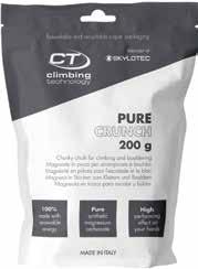 È la magnesite sintetica in pezzi per arrampicata e boulder, prodotta in modo sostenibile che migliora in modo eccezionale l’aderenza delle mani sulla roccia o in palestra. Pure Crunch è realizzata con la minor quantità di risorse possibile in laboratori che utilizzano il 100% di energia proveniente da fonti rinnovabili e la confezione in carta è riciclabile. La magnesite di Pure Crunch è realizzata con la formula unica contenente carbonato di magnesio puro ed è prodotta solo con ingredienti di altissima qualità per garantire salute e sicurezza.
