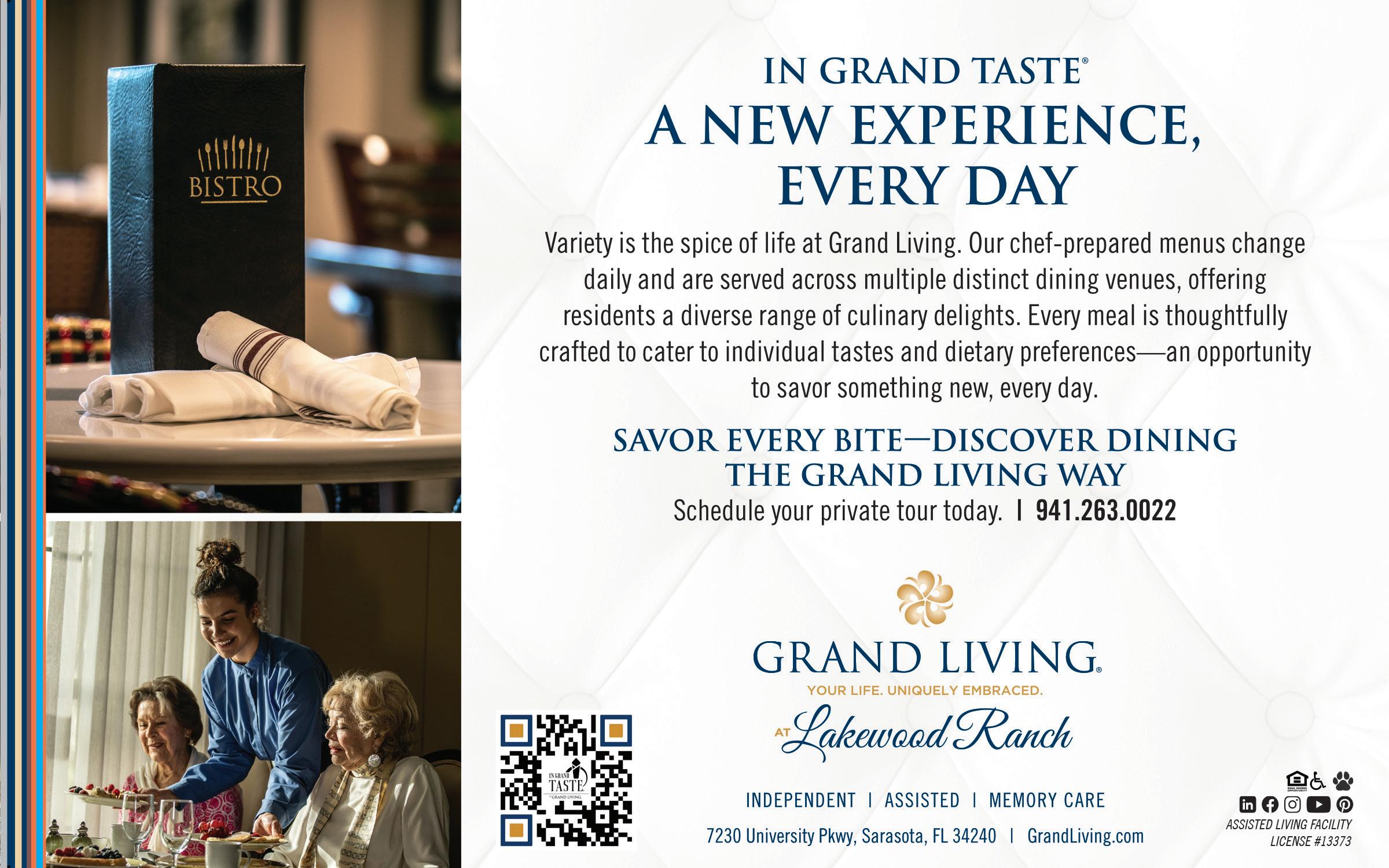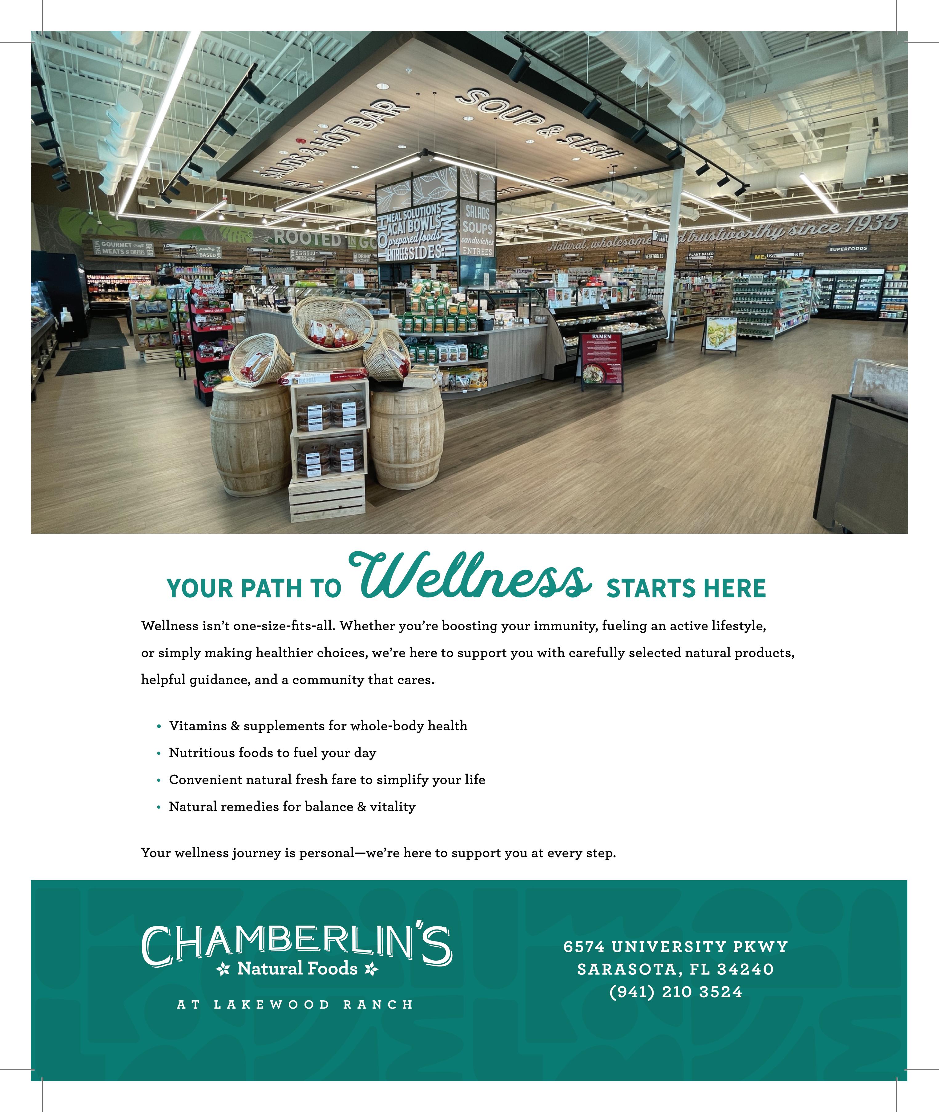 Lakewood Ranch is growing, not just in numbers, but in flavor, in wellness, and in character. In this edition, we dive into what makes our community not just one of the fastest-growing in the country, but one of the most rewarding places to call home. We meet the passionate leaders shaping our local food scene: from the scratch-made joy of Twisted Pit BBQ to the fresh, feel-good approach of Flower Child, to the bold kebabs and whimsical cocktails of Florence and the Spice Boys. Their creativity, hustle and heart reflect the spirit of the Ranch, lively, eclectic and always evolving. Meanwhile, The Thrivery offers a deeply personal story of resilience turned into nourishment, reminding us that health and healing often start with the choices we make every day. Sprinkled throughout the issue are more stories that will make you hungry, inspired and maybe even a little bit more connected to the Ranch you call home. Whether you’re exploring a new restaurant or just enjoying a fresh juice after a workout, we hope this issue helps you savor the season.