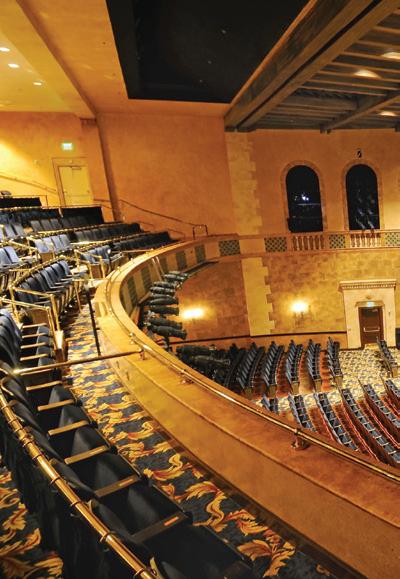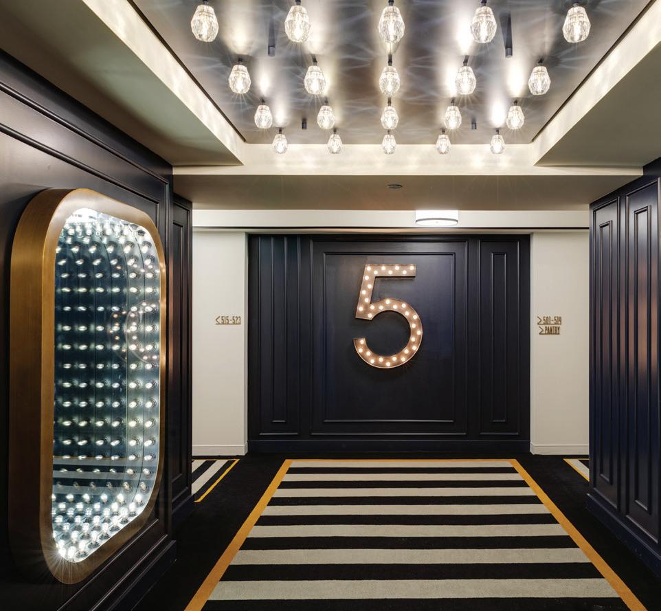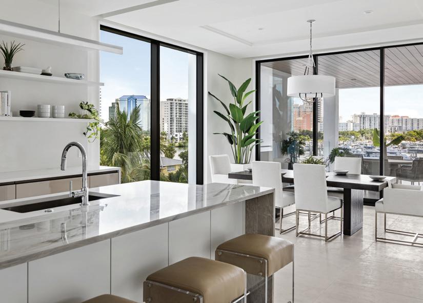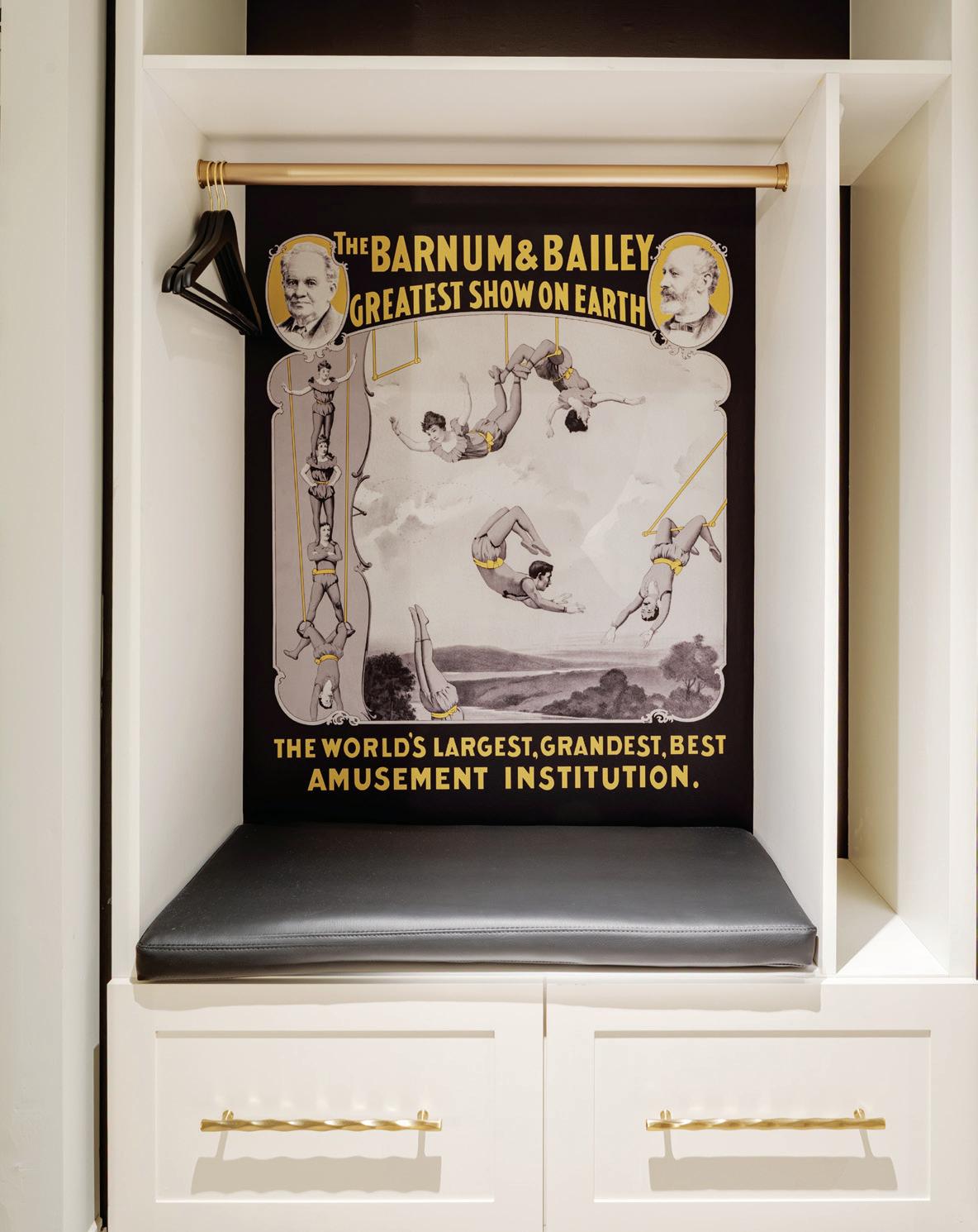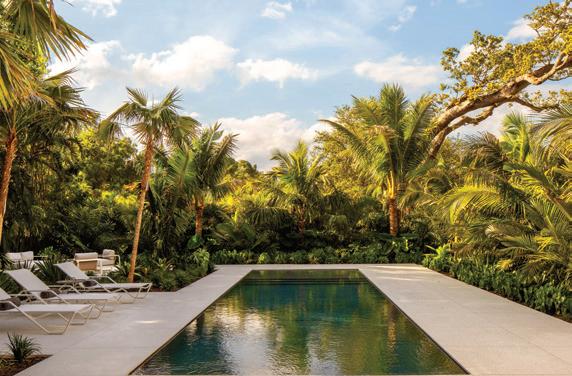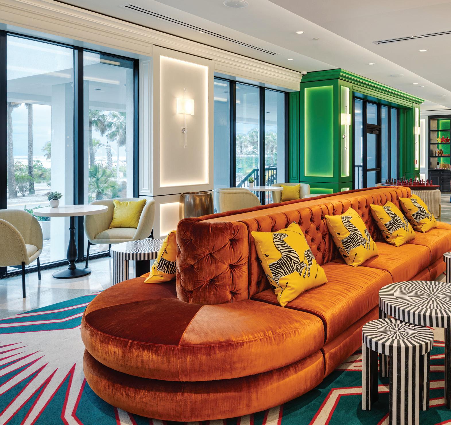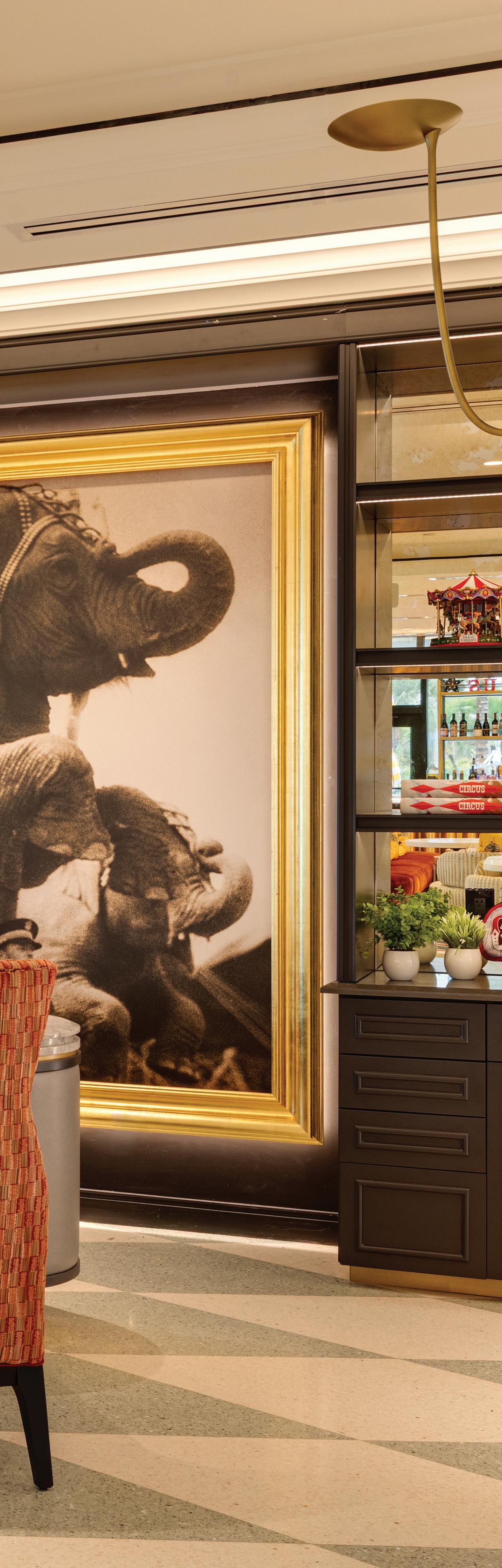 The design is very much a balance between the whimsical elements of the circus theme with the luxury and sophistication expected from the Opal brand of hospitality. “Our nods to the circus are presented in a very elegant, Art-Deco-meets-Roaring-Twentiesinspired setting,” explains General Manager Melissa Kaplan. “In fact, many of the elements feel like they intentionally draw from Ringling’s nearby Ca’ d’Zan mansion, including playful geometric tiling, ornate columns, drapery-framed entryways, sculptural hardware and finishes, fluted pathways and statement furniture pieces. It’s a very sophisticated design, but there are sprinkles of playfulness.” Even the hotel’s pool references the classic circus three-ring format, and Cirque’s logo reflects this concept with three interconnected circles.