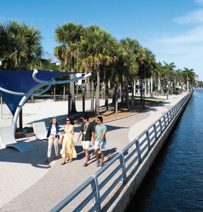 In 2025, the Gulf Islands Ferry Service transported more than 34,000 passengers between downtown Bradenton and Anna Maria Island using two 49-passenger, openair pontoon catamarans—Miss Anna Maria and Downtown Duchess–making beloved beaches just a ferry ride away. Funded by tourism tax dollars, the service helped eliminate an estimated 20,000 car trips since the service commenced in January 2024, reducing congestion and improving the visitor experience. Plans are now underway to expand the route to the Bradenton Area Convention Center, with a proposed stop at Palmetto Park. What sets the Gulf Islands Ferry apart from other water transit options is its unique combination of scenic travel and accessibility. The 50-foot vessels offer passengers an open-air experience across the Manatee River and Palma Sola Bay—turning what would be a traditional roadway experience into a relaxing ride on the water. “This is about enhancing multimodal transportation from the mainland to the island by utilizing our incredible asset—the Manatee River,” says Falcione. “Imagine you’re attending a convention with your family —you’re in meetings all day, while your spouse and kids hop on the ferry to spend the afternoon on Anna Maria Island. You can’t do that at most convention centers. That’s something that sets us apart from the competition. When you’re blessed with a good water source like we are, you can get people out of their cars and onto the beautiful river. Visitors and residents have embraced it.”