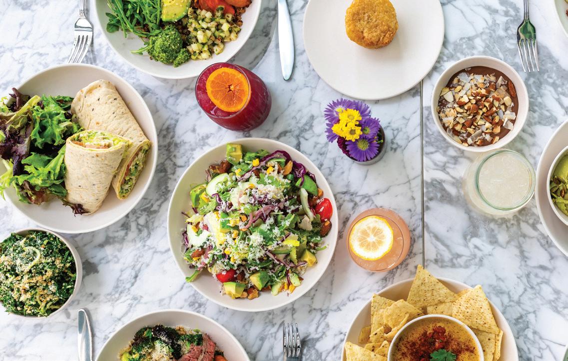 Everything on the menu at Flower Child is made in-house, using the freshest ingredients available. “Our motto is ‘healthy food for a happy world,’ but we’re not considered health food. We serve delicious, nutritious food that’s super responsible regarding calories,” explains Luz. “You can eat at our store five days a week and feel great about yourself, eat super clean with low calories or you can come and indulge. We try to appeal to every kind of dietary need—vegetarian, vegan, gluten-free—we try to make sure there’s something for everyone.”
