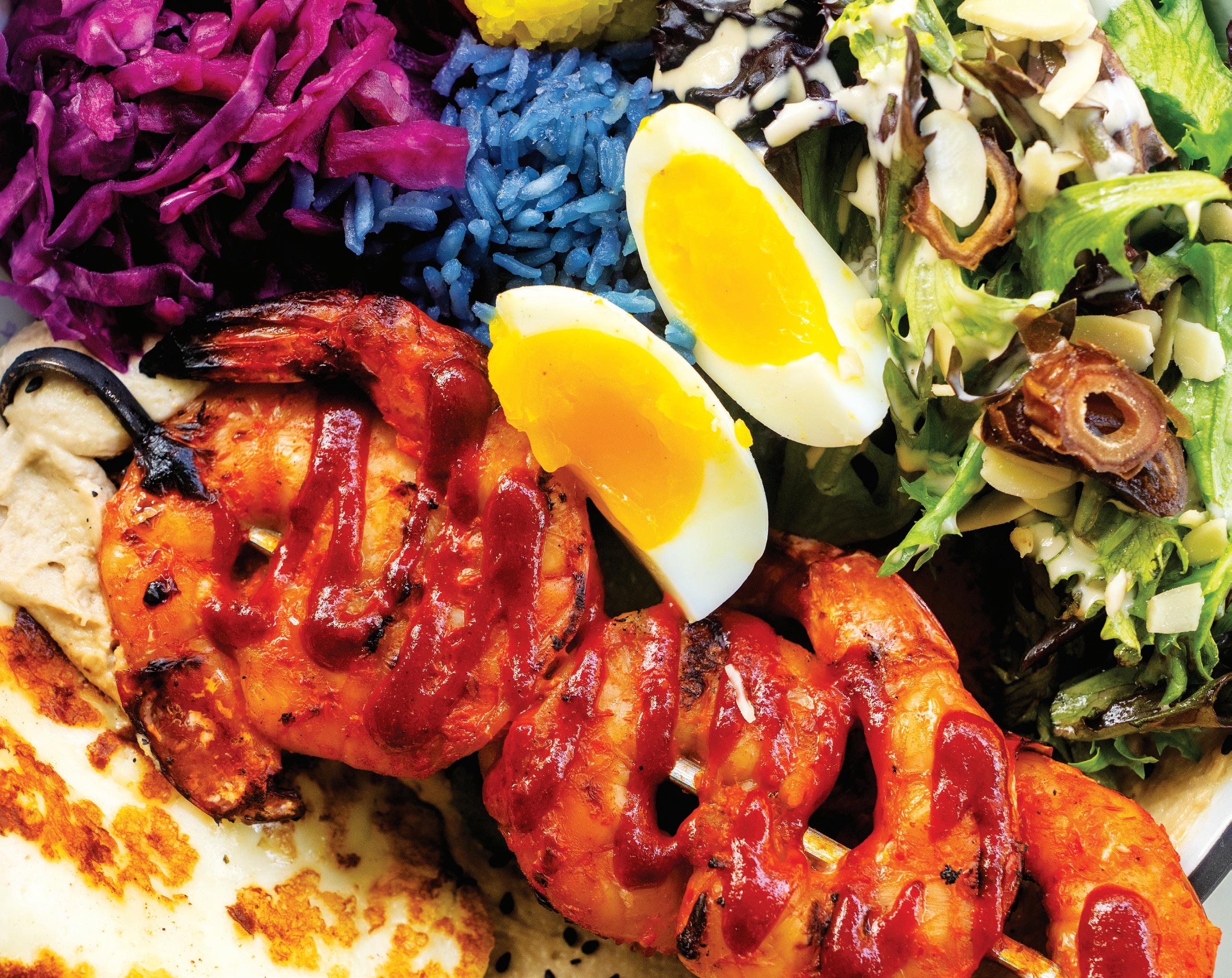 FLORENCE AND THE SPICE BOYS STARTED AS A PASSION PROJECT BETWEEN FRIENDS and it’s grown into one of Sarasota’s most exciting culinary success stories. In 2019, husband and wife Steven and Florence Schmitt and their longtime friend and business partner Carl Kolber launched a food truck serving playful, Middle Eastern-inspired street food. Their vibrant, flavor-forward menu quickly earned a devoted local following. By the end of 2022, they found a more permanent home with a brick-and-mortar location in The Landings. In April of this year they made another bold and exciting move, opening a second location at the University Town Center (UTC) where they have added a new partner, chef Collin Blakeman.