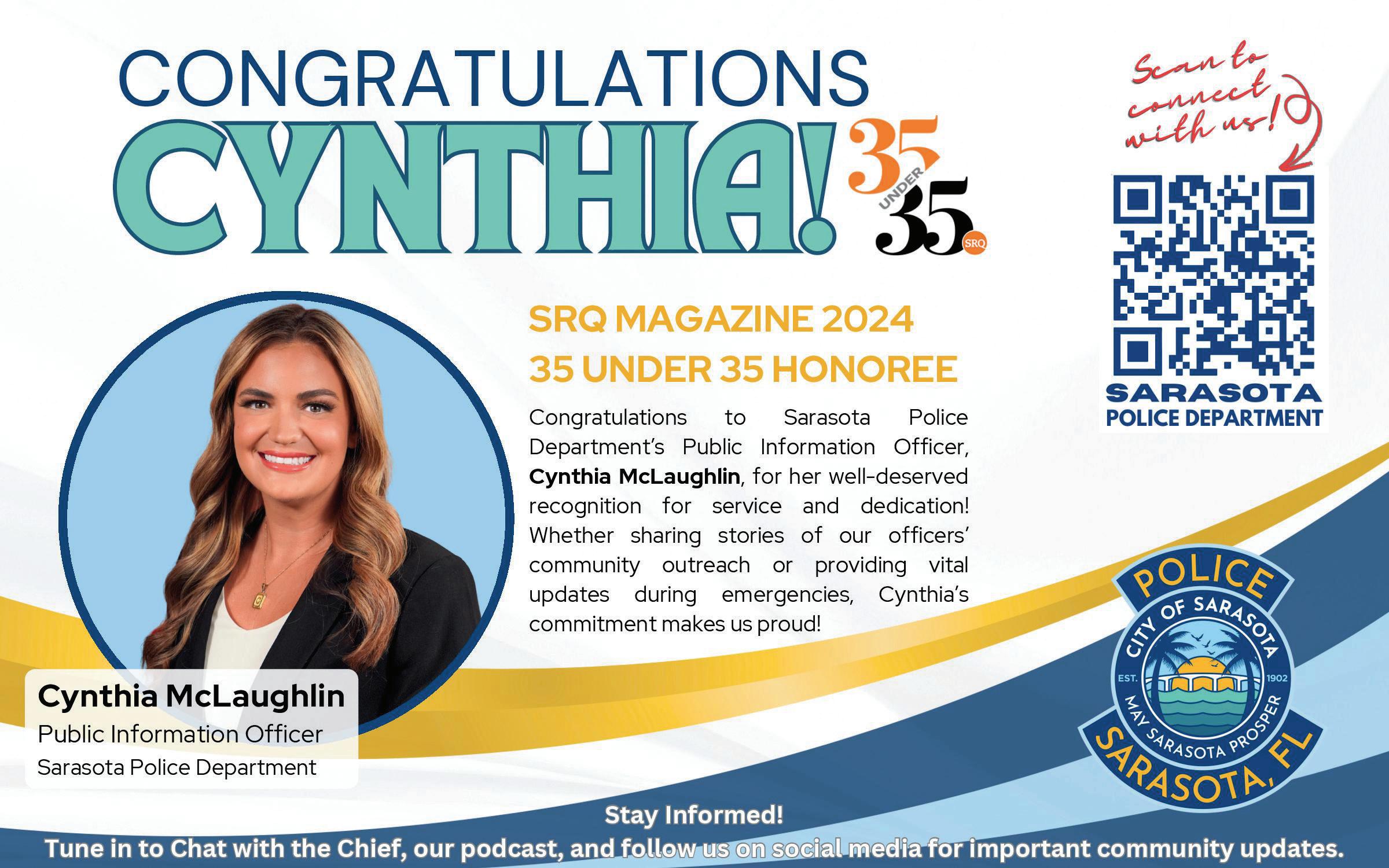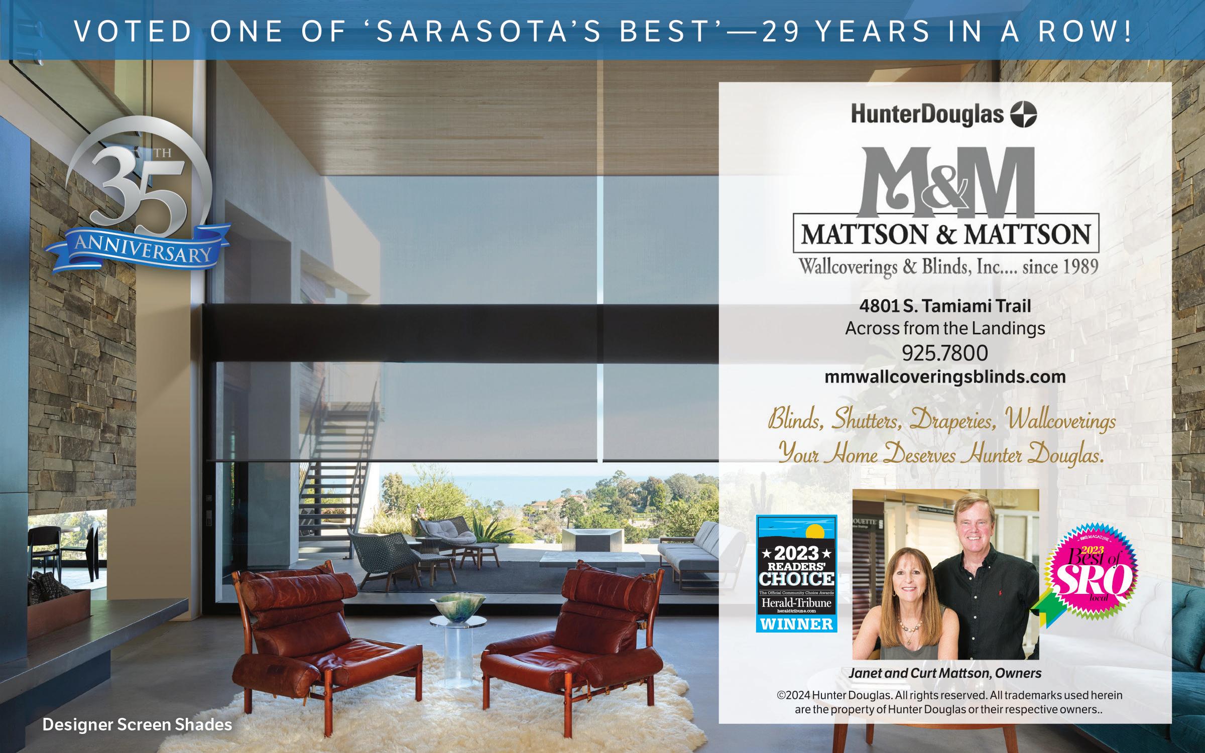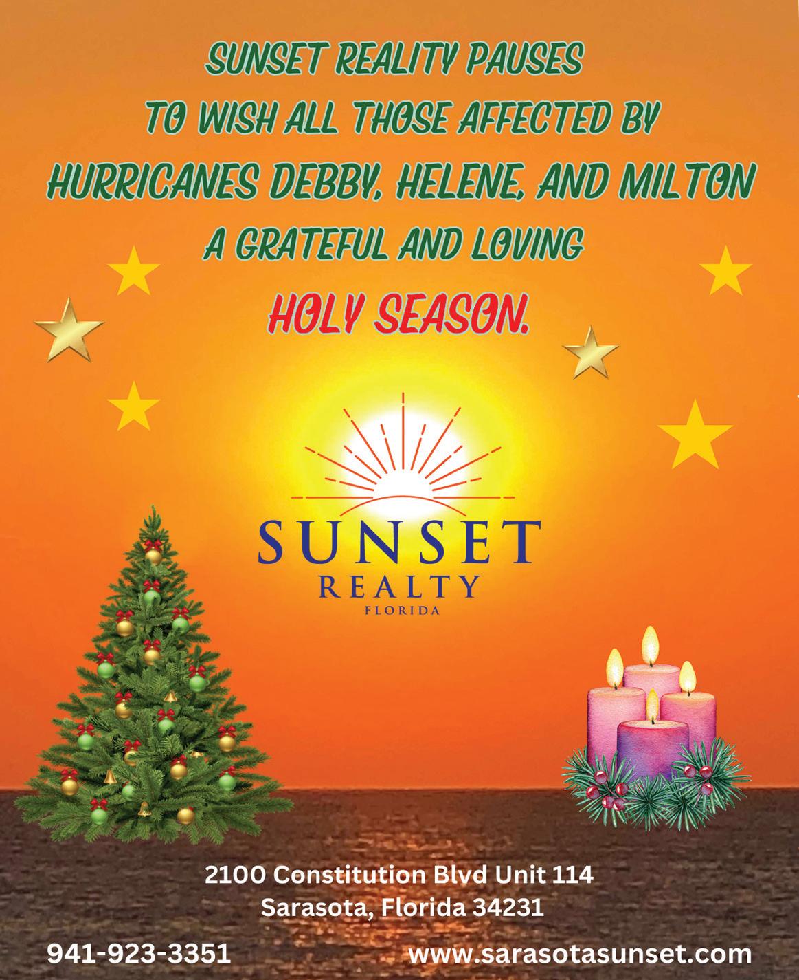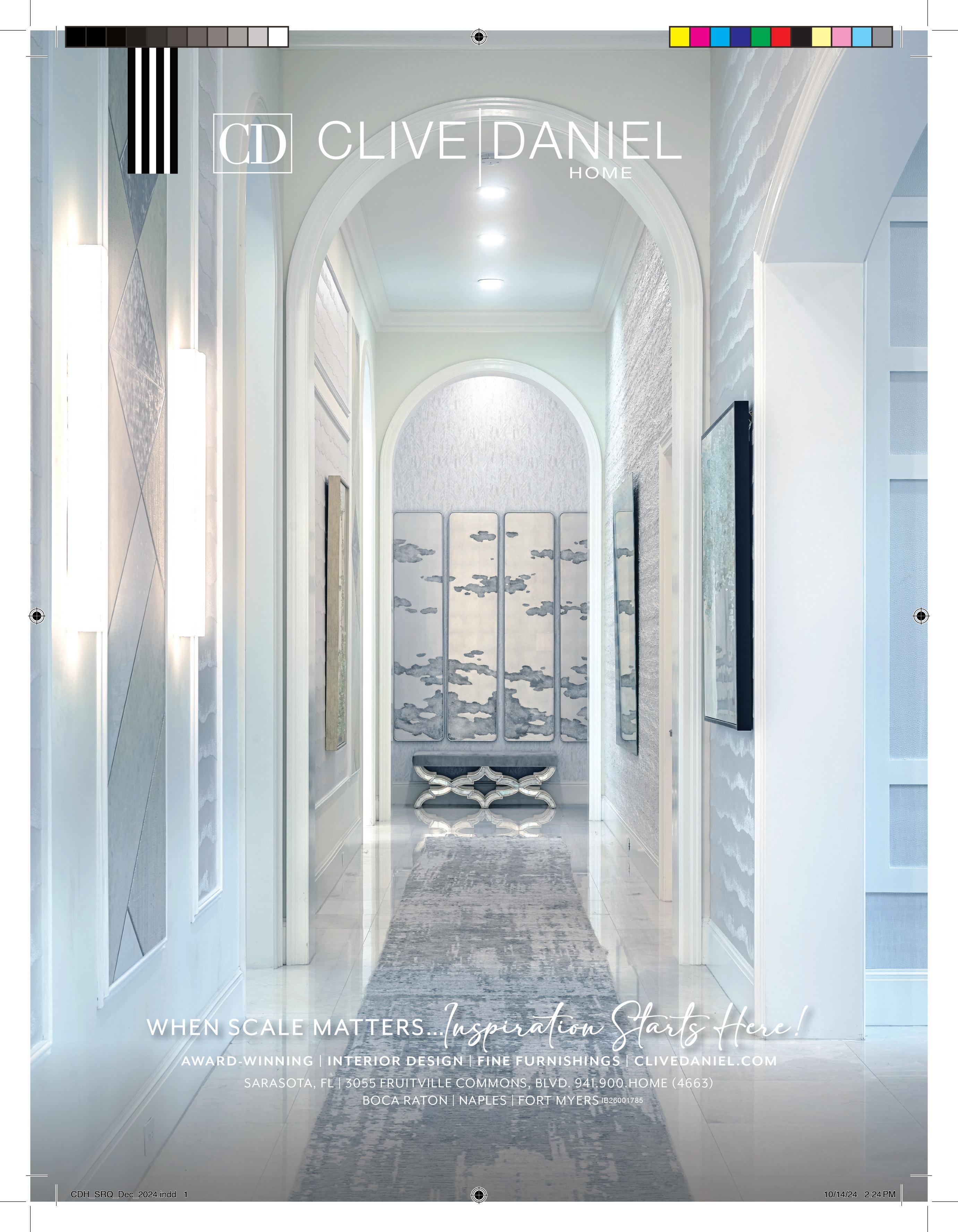 Vol. 27, Issue 270 Copyright © 2024 SRQ MEDIA. SRQ: Live Local | Love Local. Sarasota and Bradenton Area is published 10 times a year. IMPORTANT NOTICE: The entire contents of SRQ are copyrighted by Trafalger Communications, Inc. Column and department names are property of Trafalger Communications, Inc. and may not be used or reproduced without express written permission of the publisher. SUBSCRIPTION: Subscriptions to SRQ are $36 for 20 issues. Single copies are $4 at area newsstands.