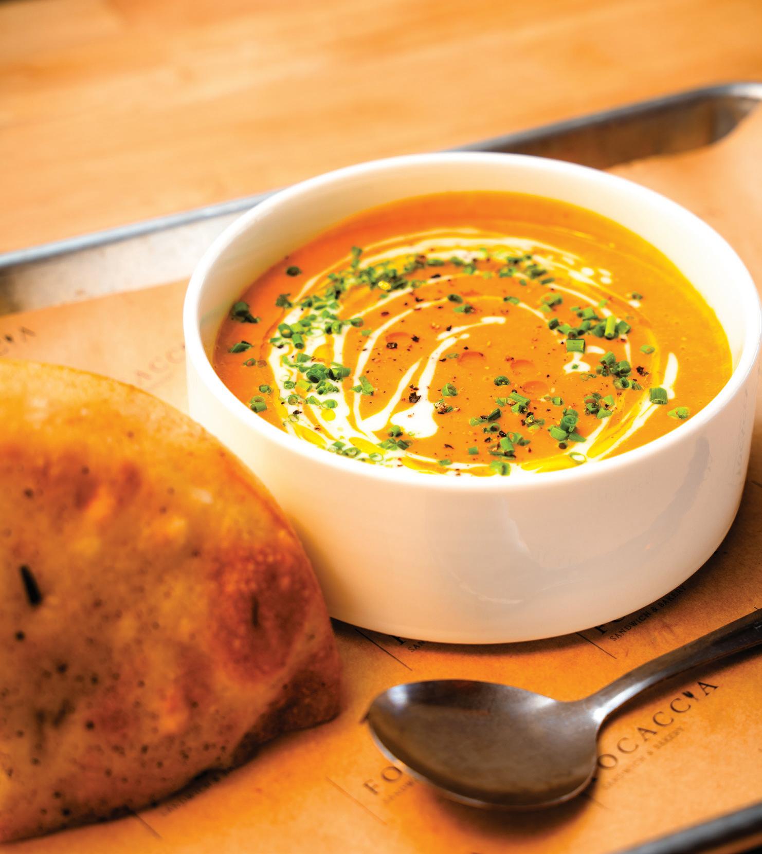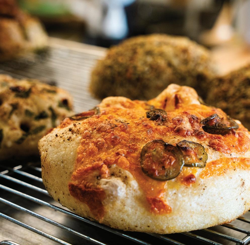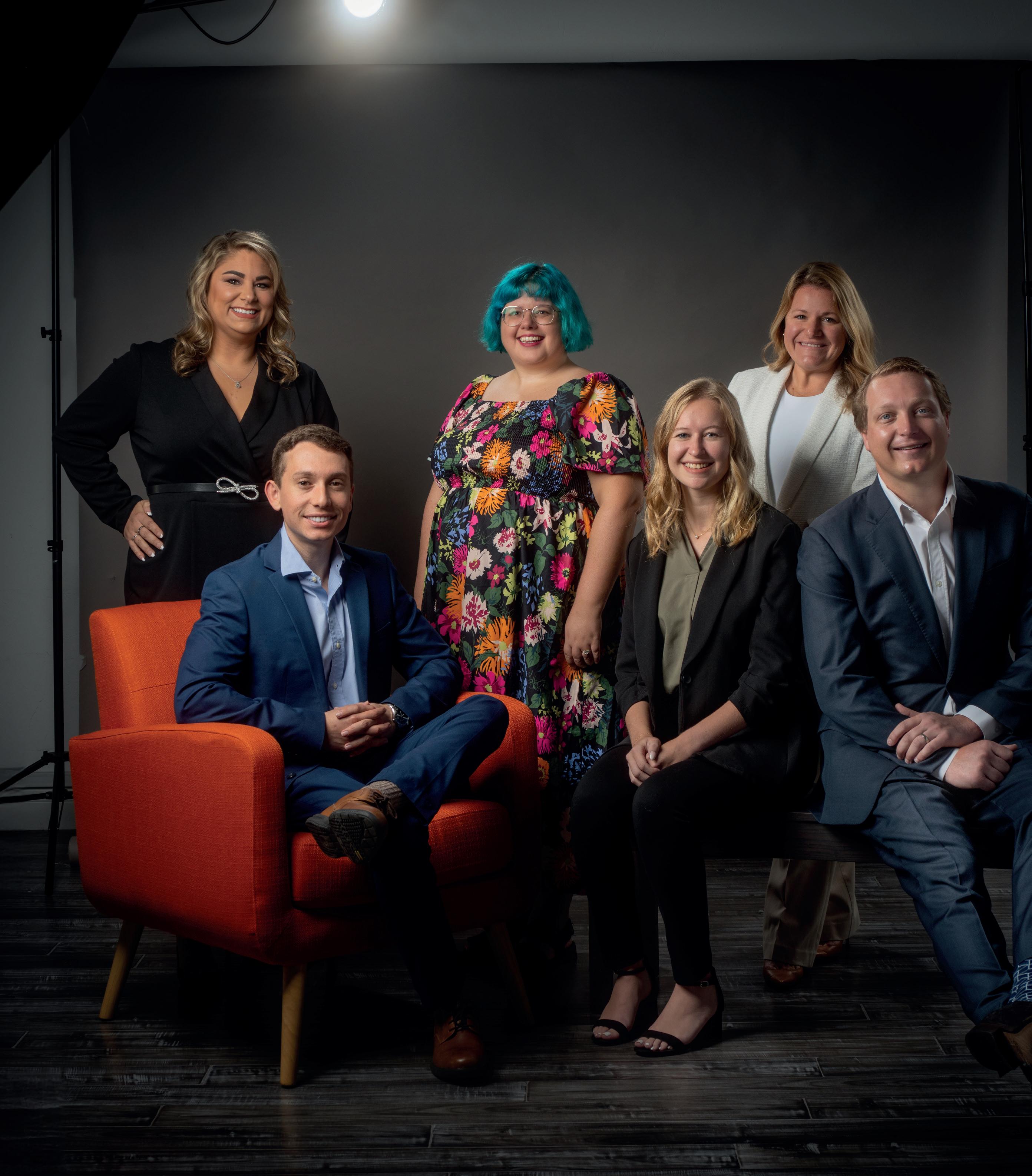Cover: Erin McLeod, President of Senior Friendship Centers, photo by Wyatt Kostygan. Previous page: 35 Under 35 Honorees including Ross Kennedy, Cynthia McLaughlin, Austin Hirsch, Amanela Corcoran, David Calandro and Chelsea Vacca, photo by Wyatt Kostygan. This page, clockwise: Focaccia, photo by Wyatt Kostygan; Bat City, photo by Wes Roberts; and Manatees on Main artist Virginia Bright gets ready to paint her manatee sculpture at her studios at The Bazaar On Apricot and Lime, photo by Wes Roberts.