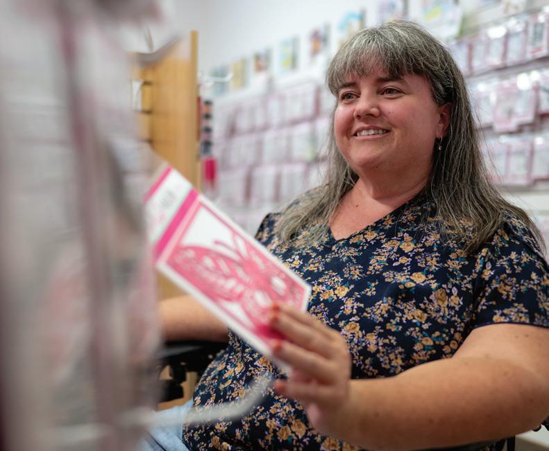 “I’VE ALWAYS BEEN INTO ARTS AND CRAFTS OF DIFFERENT KINDS,” says Michelle Currie. “My mom taught me cross-stitching at a really early age. I’ve painted ceramic Christmas villages, and back when it used to be popular I put puffy paint on sweatshirts and t-shirts for a while. Then in the nineties a coworker introduced me to scrapbooking and I kind of got hooked on that.” Today, Currie is the owner and creative director of Pink and Main, a craft store in Palmetto that specializes in papercrafting supplies. Papercrafting is the art of creating decorative and functional objects out of paper and includes disciplines like scrapbooking and card-making. “Scrapbooking led me to card-making which is very similar,” Currie says. “Both use papers, rubber stamps, stickers and things like that. I really enjoy card-making because it’s a smaller canvas. You make a little card and it’s done.” At chain craft stores, you’ll often find the same cookie-cutter stamps and dies. What sets Pink and Main apart is the uniqueness of their product. When Currie first started, she personally designed all of the stamps. As the business has grown, she has brought in artists that illustrate the concepts she comes up with for the stamps and dyes. In addition to the standard papercrafting supplies like foils, stencils and embellishments, Pink and Main also offers curated subscription boxes including the Crafty Courtyard Kit which comes with enough materials to make dozens of cards. It’s not surprising that Currie would incorporate such personal touches in her business. It’s part of what she loves about crafting in the first place. “In this day and age when we’ve gotten so used to texting and emailing, making a card is a simple way to let someone know you’re thinking about them that doesn’t involve technology,” Currie says. “You get to see the joy when you give it to someone and tell them you made it for them.” SRQ