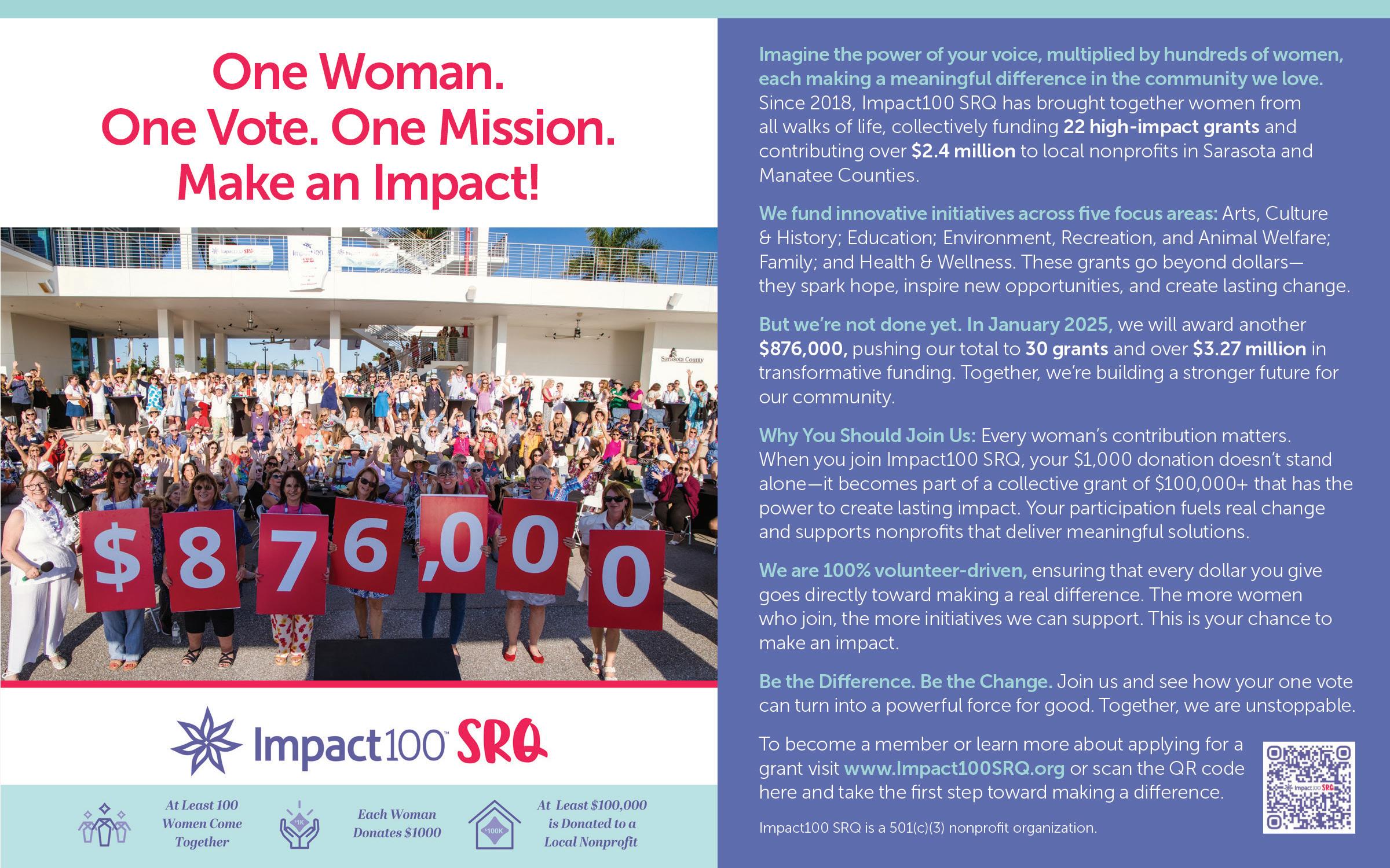 Meet the women of Impact100 SRQ, 100 Women Who Care and Sisterhood for Good as they transform women-led philanthropy. BY BARBIE HEIT | PHOTOS BY WYATT KOSTYGAN AND WES ROBERTS