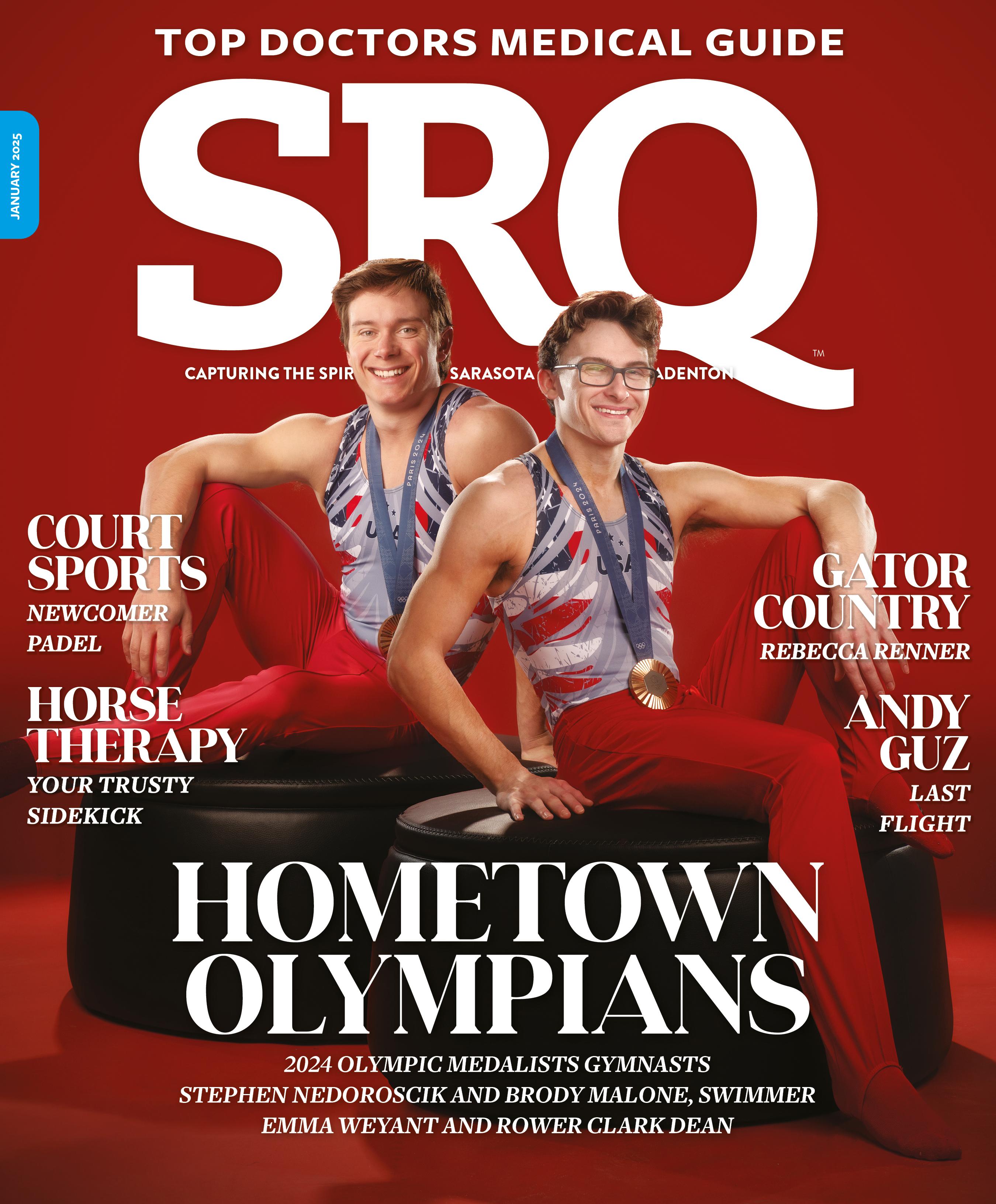 Cover: Men’s U.S. Gymnastics 2024 Paris Olympic medalists Brody Malone and Stephen Nedoroscik, photo by Wyatt Kostygan. Previous page: Meet our hometown Olympic atheletes as they wrap up an epic year at the 2024 Paris Olympics. This page, clockwise: Belts, photography by Wyatt Kostygan; Tammy Nguyen, photo courtesy of Sarasota Art Museum; and, Duo and Donner Deli, photography by Wes Roberts.