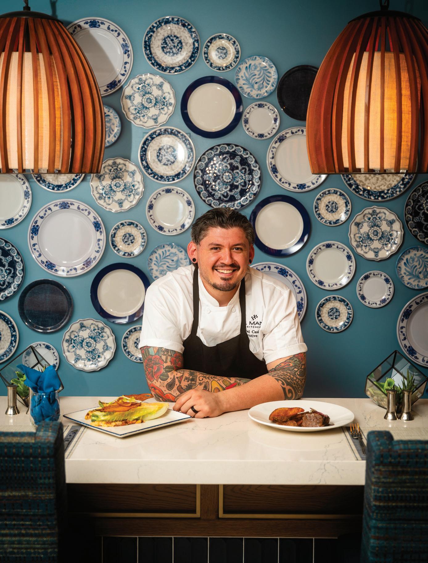 Below, left to right: Executive Chef Joel Casillas, and the Le Mans Fojito, a delightful mocktail.