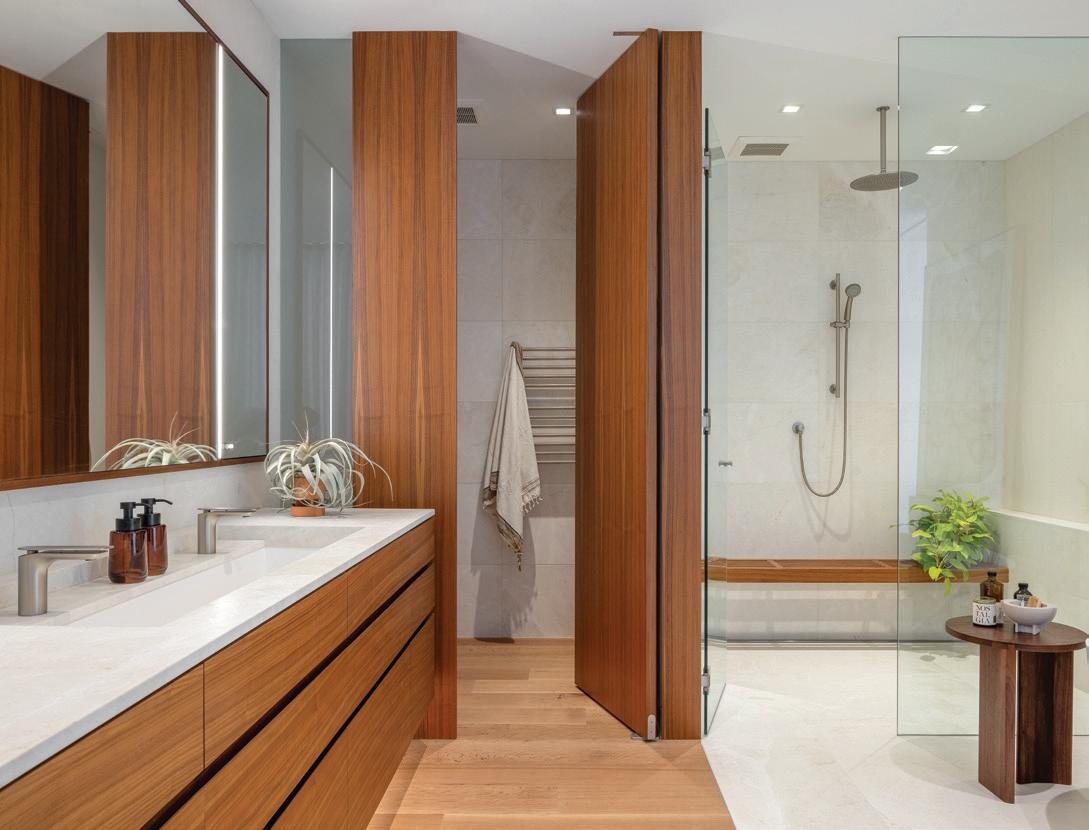 Cover: The Blackburn Bay Platinum Award-Winning Home of the Year in the category of Best Overall Home Over $4 Million by Sweet Sparkman, photography by Ryan Gamma. Previous page: Gulf Gardens Platinum Home of the Year in the category of Best Renovation/Remodel by Sweet Sparkman, photo by Steve Cartano and Ryan Gamma. This page: The panzanella salad at Acqua Pazza; Robert Gaglio on his new book Freedom to Wander; and, Peach Fuzz Pantone inspired local goods, photography by Wyatt Kostygan.
