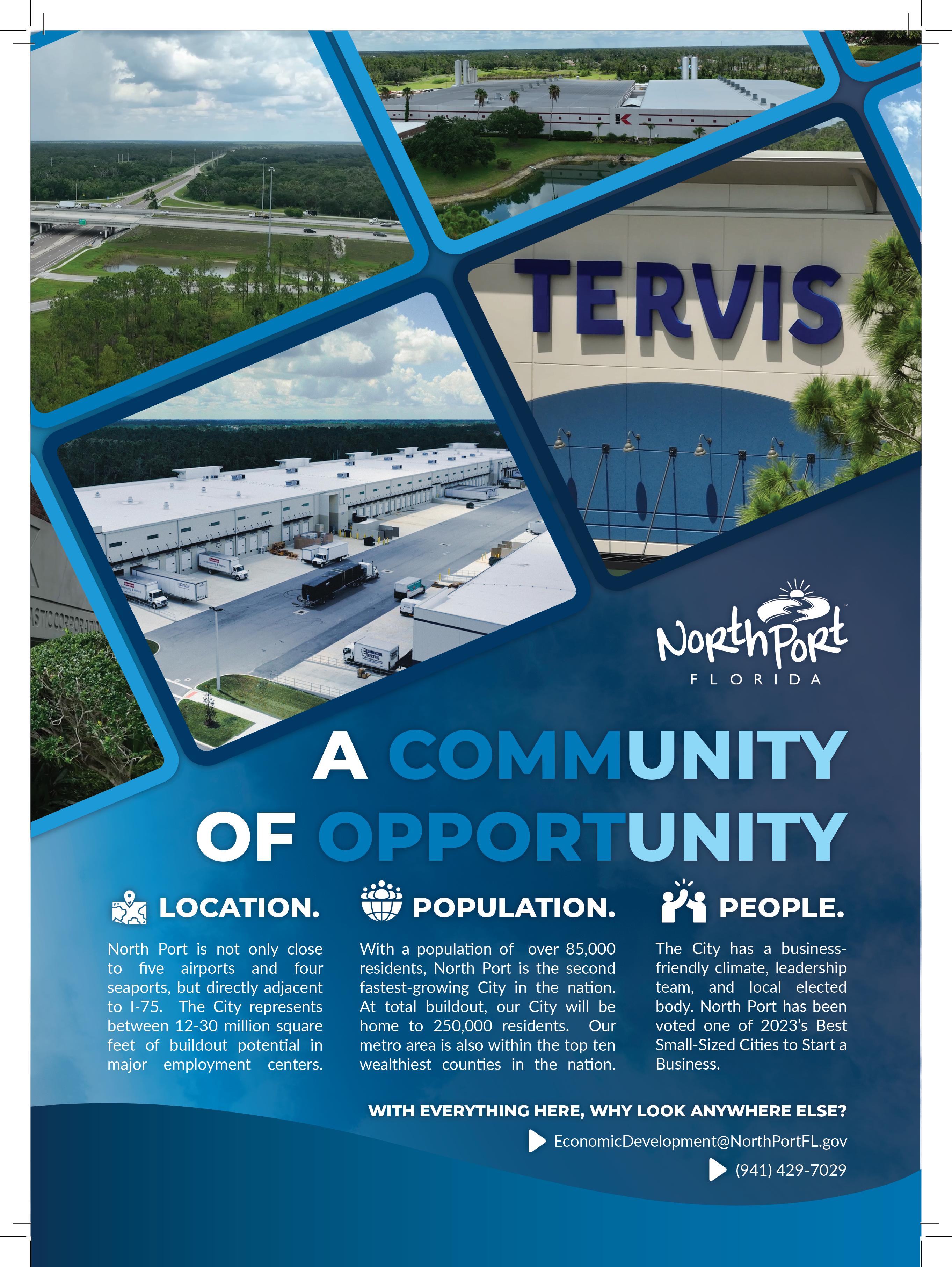 who came into the position in October 2021. As City Manager, Fletcher serves as the acting arm of North Port’s City Commission–a legislative body made up of five elected members who are empowered to make decisions to help chart North Port’s future. “As City Manager, I’m responsible for the day-to-day administration and activities of the city from making sure that we take care of all of North Port’s public works and utilities, the internal departments of HR, budget, finance and all the different administrative arms of the city,” says Fletcher. “I work at the pleasure and service of the five-member board, who through a strategic plan set a policy direction, outline the outcome they want to achieve and then we go out and do it/achieve it.”