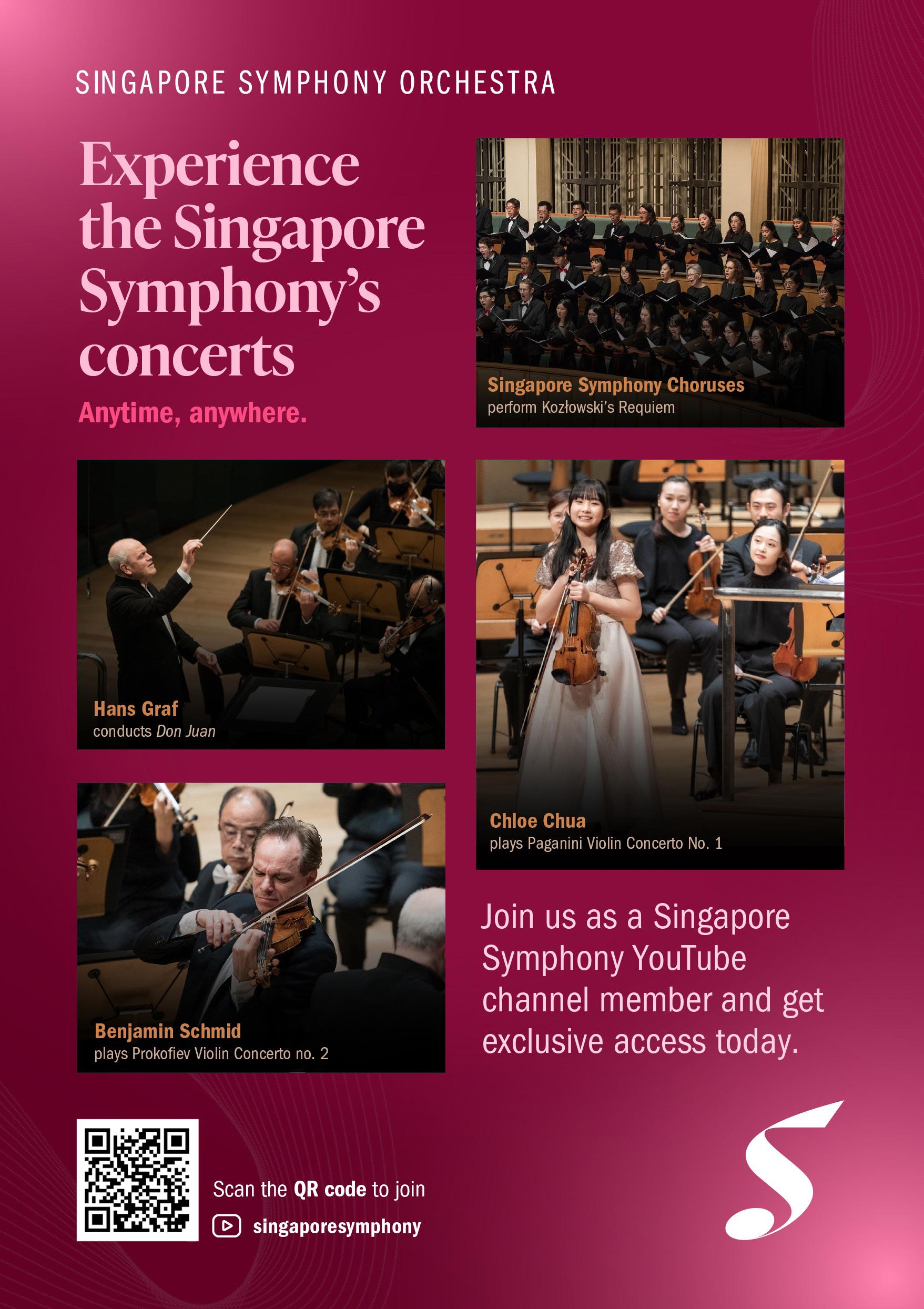 The vision of the Singapore Symphony Group is to be a leading arts organisation that engages, inspires and reflects Singapore through musical excellence. Our mission is to create memorable shared experiences with music. Through the SSO and its affiliated performing groups, we spread the love for music, nurture talent and enrich our diverse communities. The Singapore Symphony Orchestra is a charity and not-for-profit organisation. You can support us by donating at www.sso.org.sg/donate.