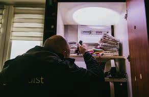 ❷ Eigenaar Marc is ook aanwezig, hij wacht de controleur in de woonkamer op. Hij bevestigt het fijne contact met de huurders. “Het zijn lieve mensen en ze onderhouden de woning goed. Adam is een vakman, dus de meeste klussen voert hij zelf uit als er iets kapot gaat. We zijn dat zo overeengekomen en in ruil krijgen ze korting op hun huurgeld.” Marc vindt het belangrijk om bij de controle aanwezig te zijn. “Veel eigenaars vallen uit de lucht wanneer ze horen dat de woning die ze verhuren gebreken vertoont. Ik wil graag dat alles veilig is en naar behoren werkt, dus ik vind de controles een goeie zaak.”