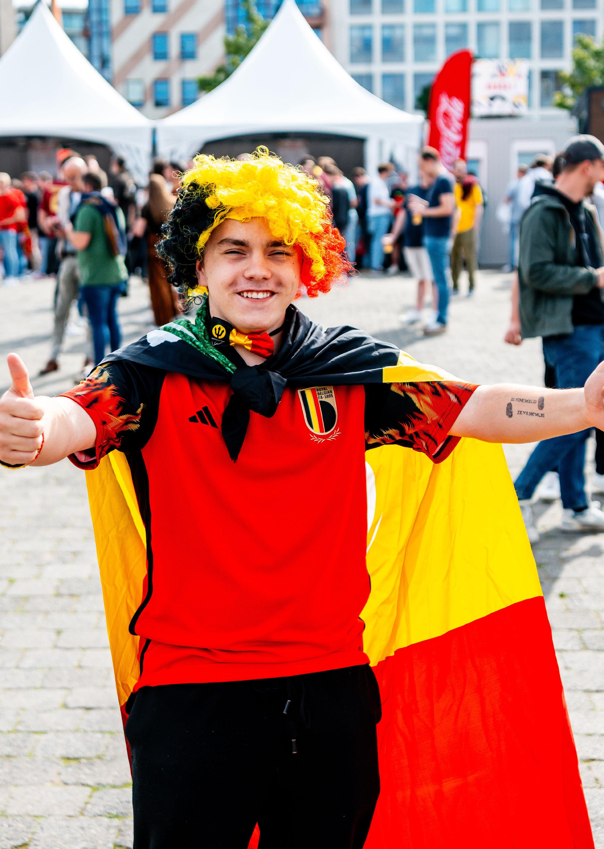 Kjelle Pollaris treffen we aan bij de match van de Rode Duivels op Festival da Copa op het Kolonel Dusartplein. “Als voetbalfan volg ik de matchen van onze duivels natuurlijk. Samen met mijn vrienden kijken op het grote scherm en genieten van de toffe sfeer: voor mij is de ambiance belangrijker dan de winst!”