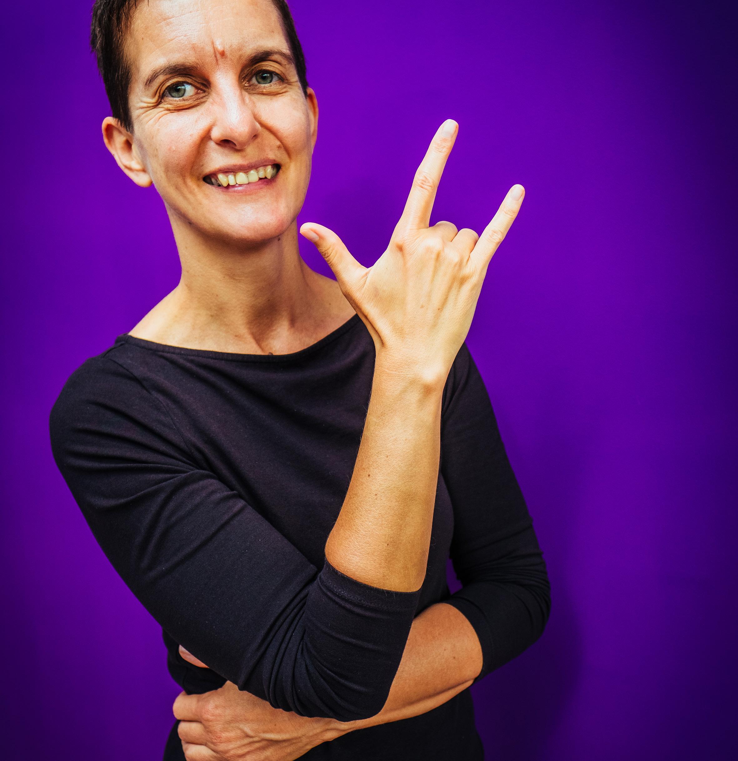 Kristien: “Steeds meer organisatoren denken aan dit doelpubliek. Heel fijn om te zien! Concreet zal je me dus al heupwiegend en druk gebarend terugvinden op de concerten van popkoor Moosa-iek, het Koninklijk Hasselts A Capellakoor en jeugdkoor MoosAmuze. Uitdagend, want elk koor is anders in akoestiek, meerstemmigheid en taalgebruik. Ik bereid me dus héél goed voor. Naast het feit dat ik het een prachtige taal vind, is het enthousiasme van het publiek een grote motivator. Ik merk dat zelfs horenden het visuele aspect appreciëren. Maar het draait natuurlijk niet om mij: ik zorg enkel voor een voorstelling die extra toegankelijk is voor een groter doelpubliek.”