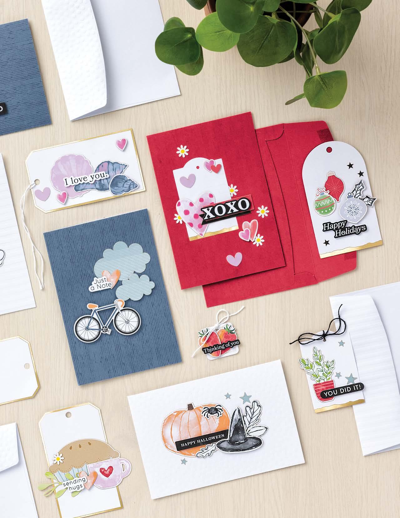 It might be a handmade card with a heartfelt message to celebrate something special, or a Thinking of You card for someone on a particularly happy or hard day. It could be taking time to create fun favours for a party or a stunning piece of home decor—or capturing life’s moments with beautiful scrapbook pages that become lasting keepsakes. Taking time to make something for the people you love is a special reminder of how much you care.