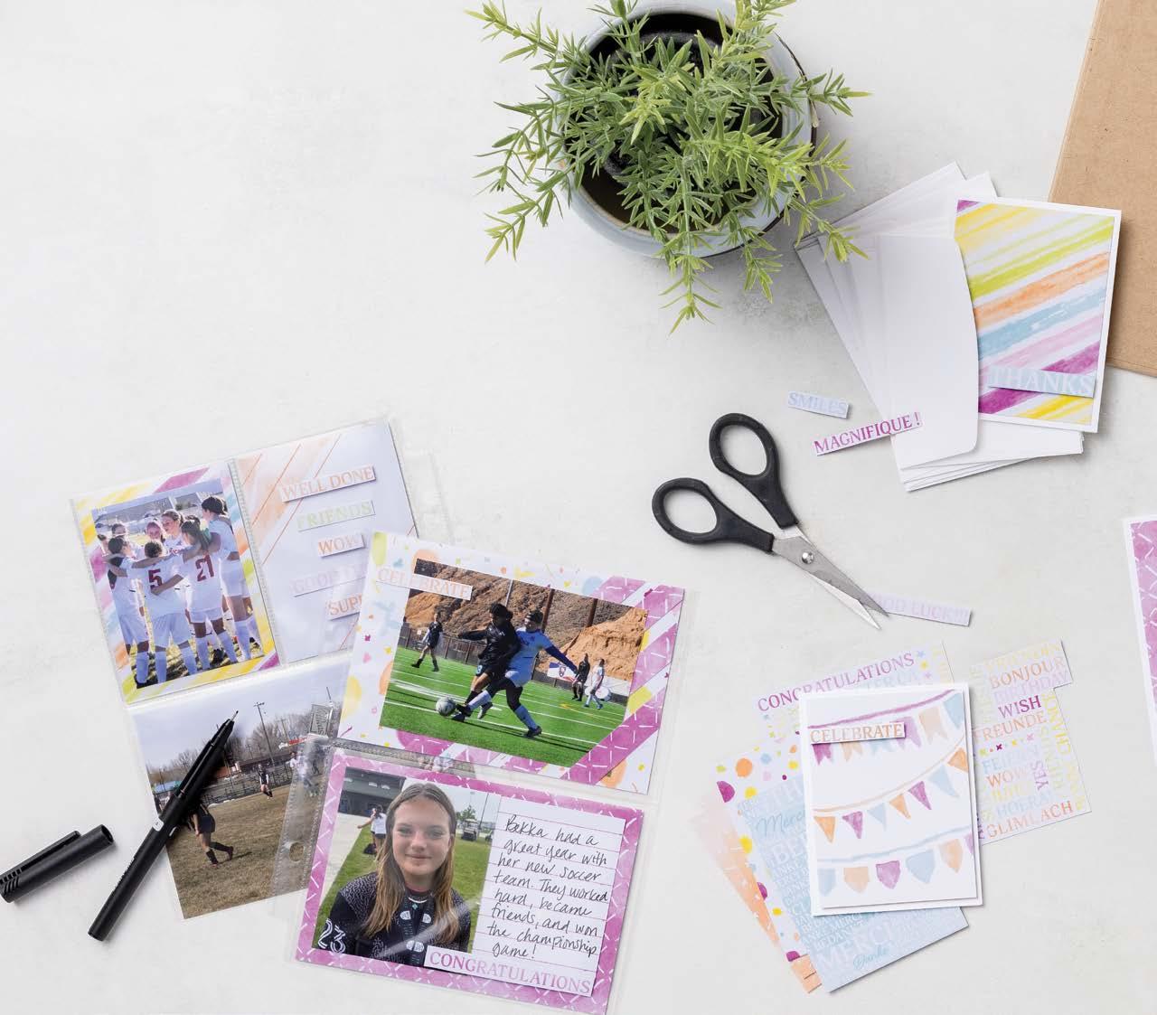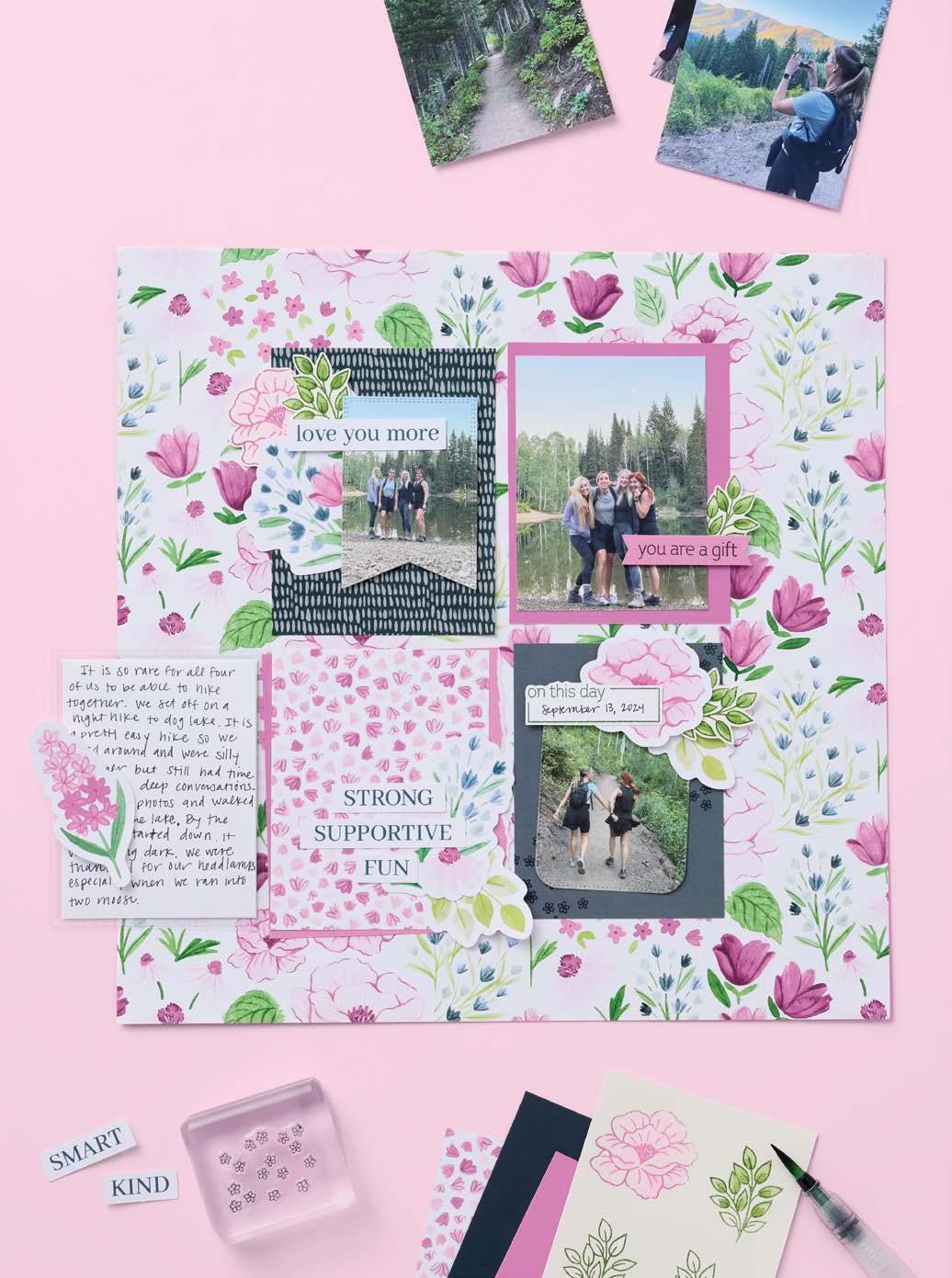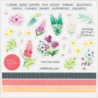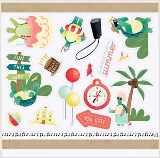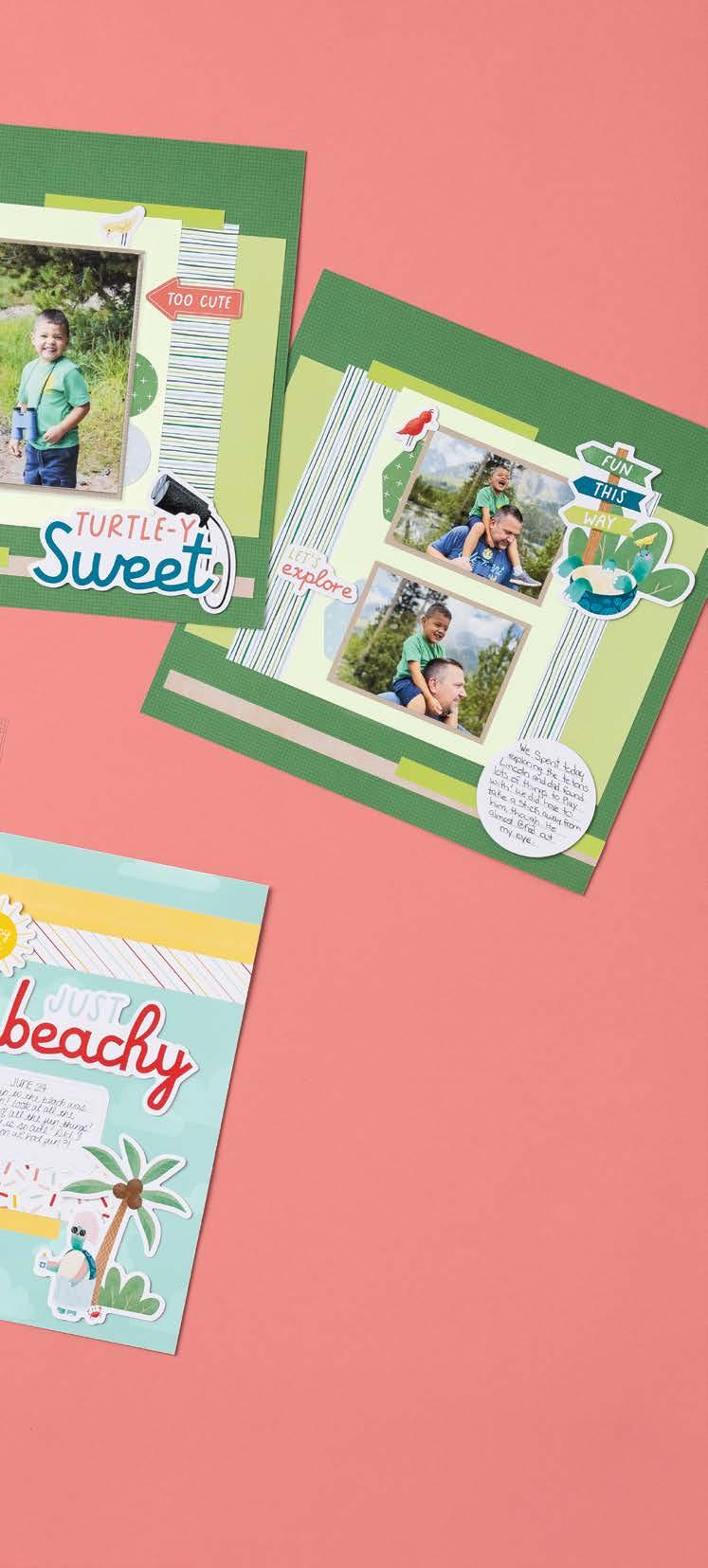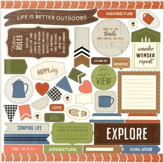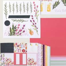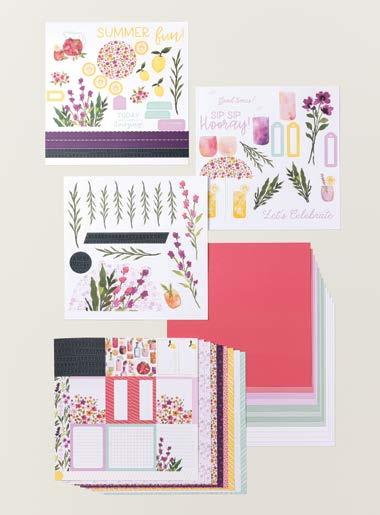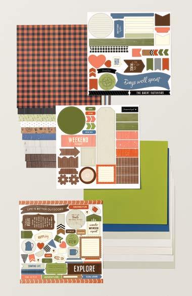 Makes three two-page 12” x 12” (30.5 x 30.5 cm) scrapbook spreads. Kit includes one of each item listed below. Coordinates with the Scrapbooking from Scratch products on p. 67.