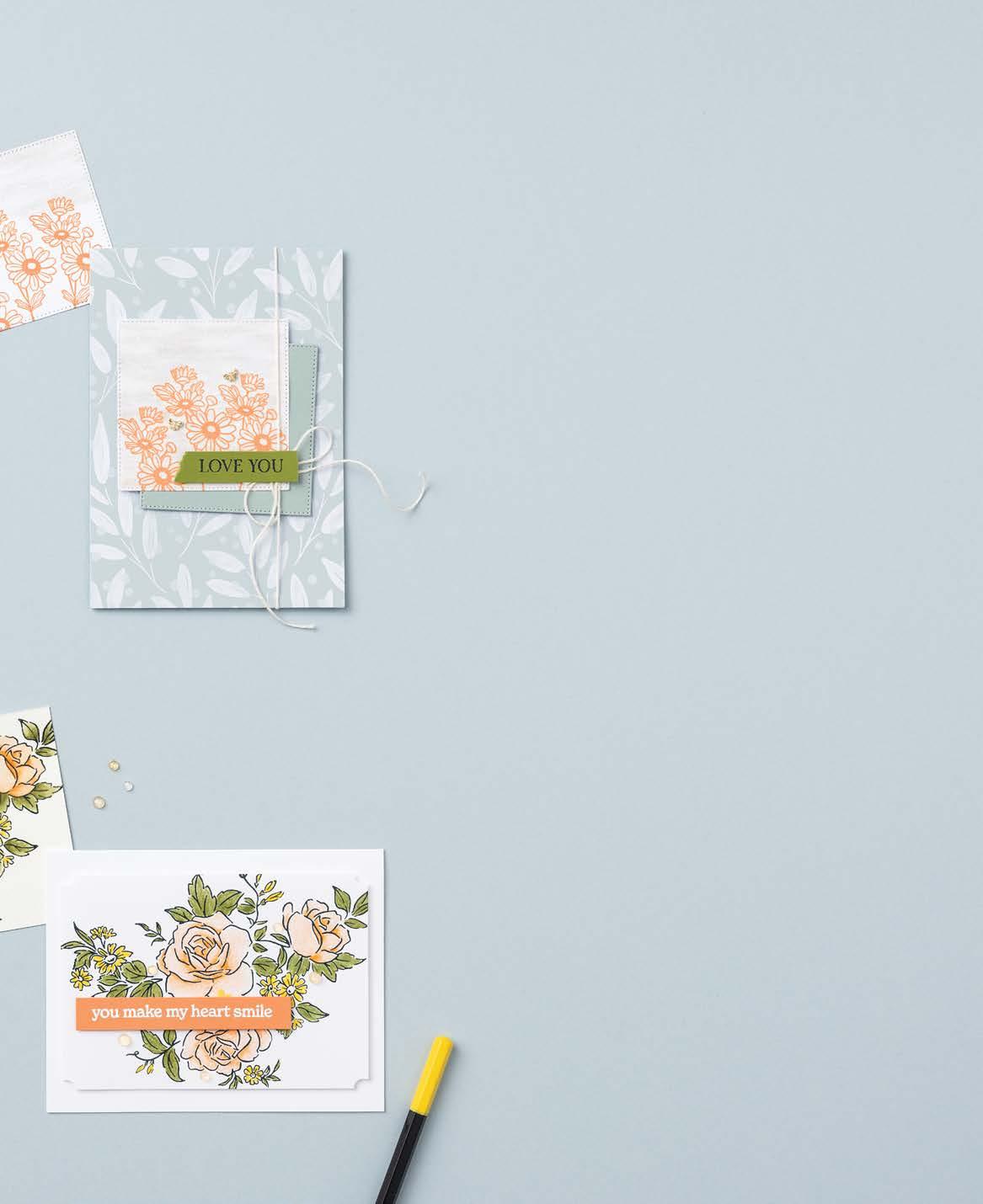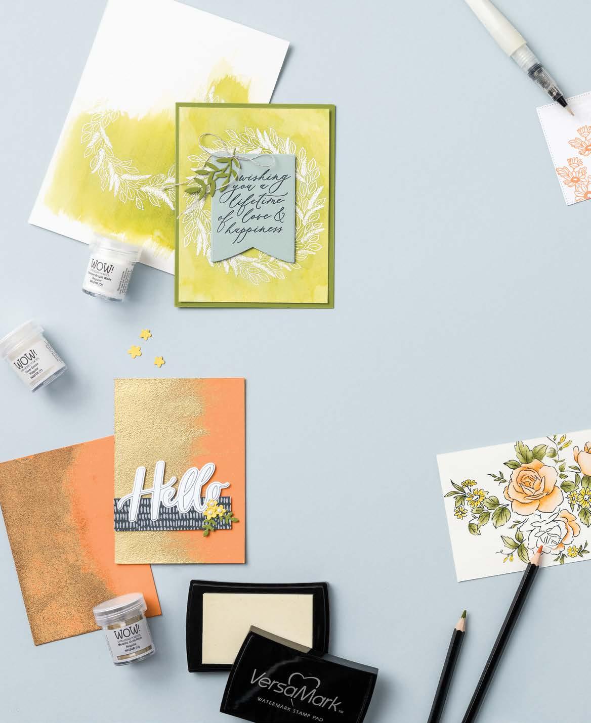 The contents of this catalogue are protected by the Australian and New Zealand copyright and trademark laws. Reproduction of the catalogue or any portion thereof is strictly prohibited. Purchasers of Stampin’ Up! products are authorised to sell hand-stamped artwork made with our copyrighted designs only in accordance with Stampin’ Up!’s Angel Policy, a copy of which can be found on the Stampin’ Up! website at stampinup.com.au/angel-policy or stampinup.nz/angel-policy or obtained from a Stampin’ Up! demonstrator. Permission is not granted to mechanically reproduce stamped images.