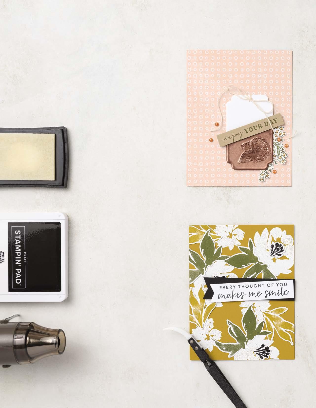 The pages that follow are filled with products . . . opportunities to create meaningful moments and experiences to share with others. We hope it’s easy to find what you need—any time. Maybe it’s a Step-by-Step project, where everything’s ready for you to jump right in with a friend. Or perhaps you have a larger gathering and need Quick & Easy options you can mix and match with essentials. Or you might want to craft the day away with Creativity Your Way to make something special with someone special.